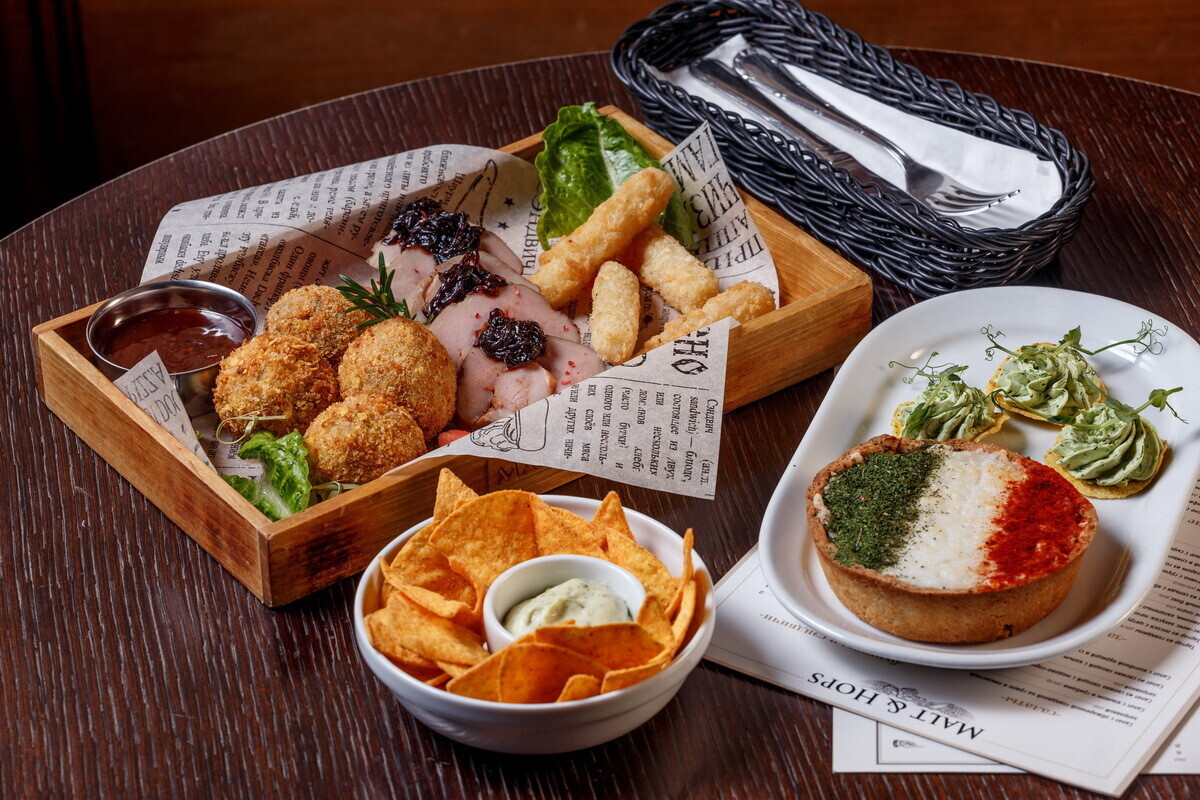- Ирландка из Баллималое – нежный сливочный паштет из цыпленка с кукурузой и зеленым луком. Подается с луковым джемом, приготовленным на светлом лагере с американскими тостами на гриле
