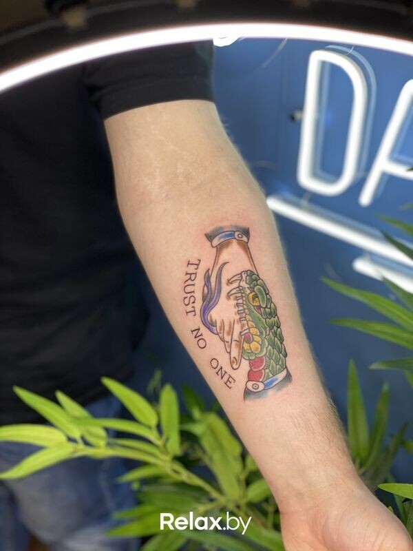 Отметим, что мастера студии работают на профессиональном оборудовании Cheyenne, Xion, Skinductor. Здесь используют только одноразовые и гипоаллергенные материалы брендов Tattoo pharma, World famous Ink, Eternal Ink, Suprasorb F. Все, что нужно для работы мастера, регулярно обрабатывается. Перчатки, пленки, иглы, картриджи и другое — исключительно одноразовое, для поддержки контактной стерильности. Цены на услуги можно посмотреть здесь.