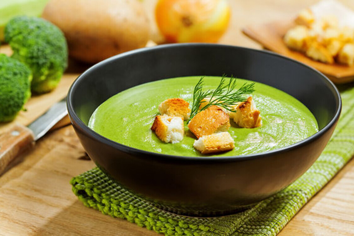 - Крем-суп из брокколи с миндальными лепестками и трюфельным маслом (300 г/6 руб.).