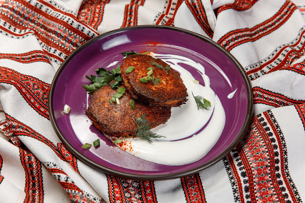 - Деруны с цыпленком-гриль (120 г/70 г/6 руб.).