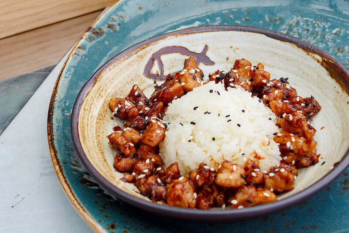 - Сладкое хрустящее куриное филе с рисом (184 г/5 руб.).