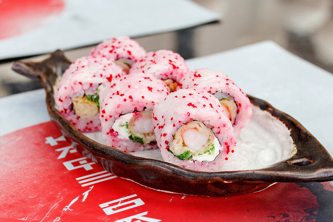 - Ролл с чукой и креветкой в темпуре (190 г/5 руб.).