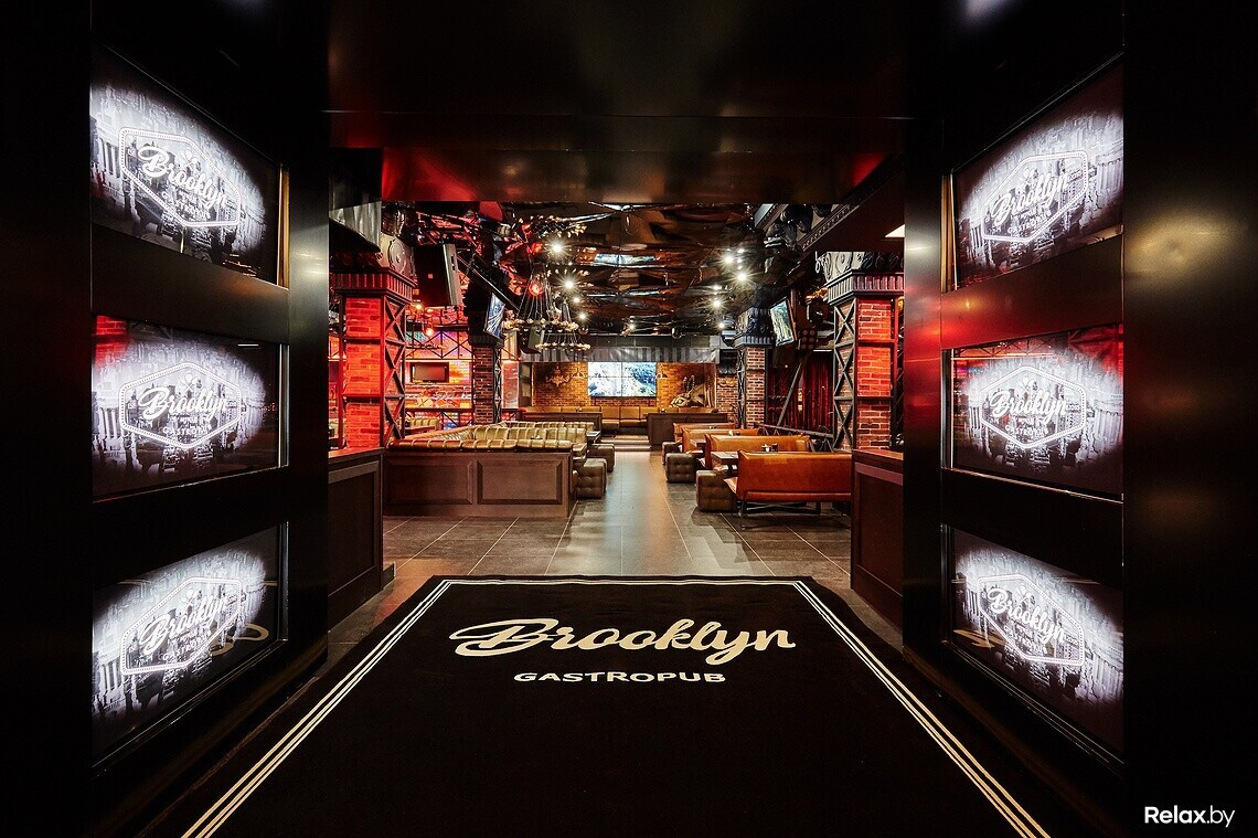 В меню ресторана — популярные блюда разных кухонь мира с авторским акцентом. По вечерам в «Бруклине» звучит живая музыка, работает караоке, есть кальяны. Также здесь можно посмотреть наиболее значимые спортивные трансляции.