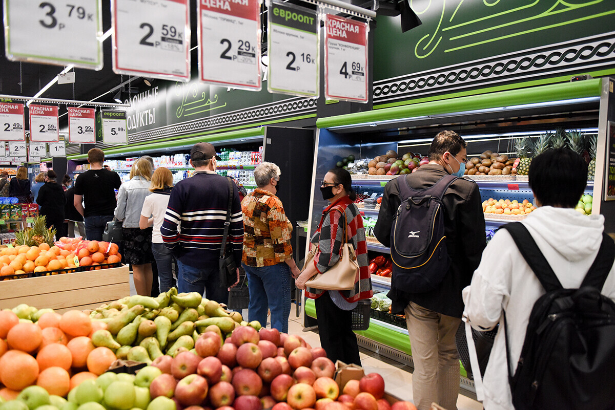 В магазине есть «остров» с готовыми продуктами и полуфабрикатами, рассчитанный в том числе на туристов, которые часто выбирают для экскурсий центр столицы.