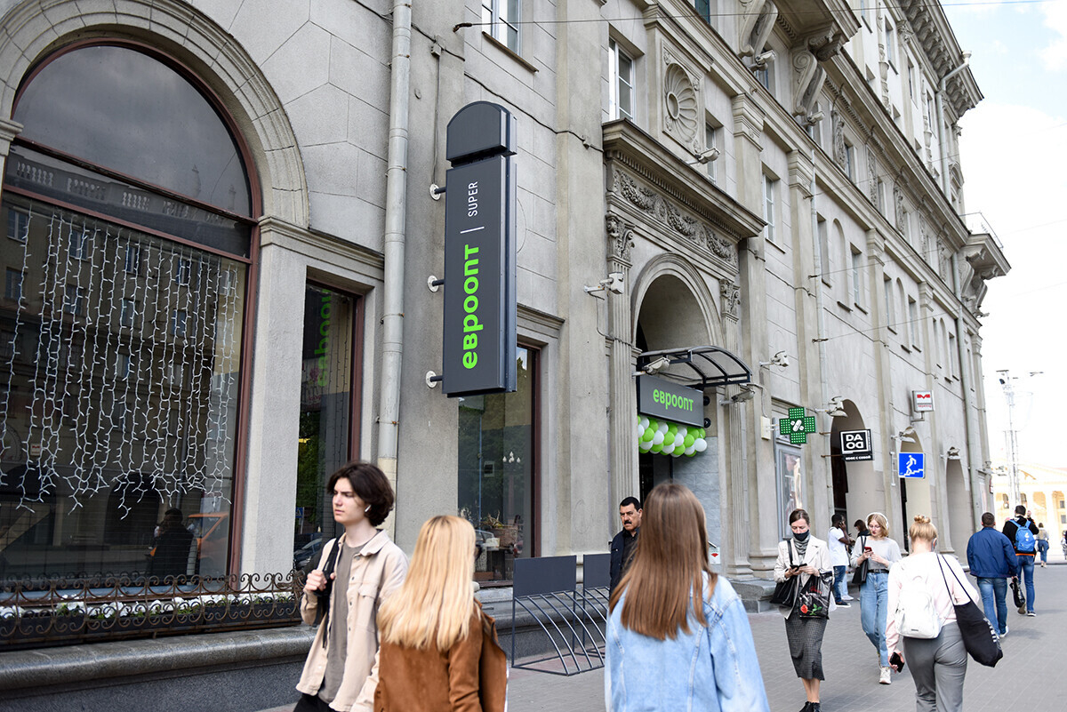 Супермаркет «Евроопт» заработал в универсаме «Центральный» на проспекте Независимости, 23, прямо над станцией метро «Октябрьская». При этом историческое здание сохранило узнаваемую вывеску и лепнину.
