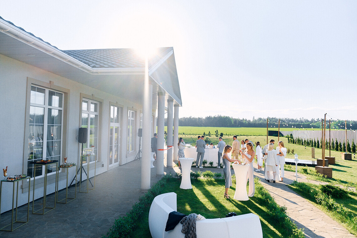 На открытие нового банкетного зала La Dolce Vita House пригласили представителей беларусской ивент-индустрии: ведущих, организаторов, декораторов, фотографов и видеографов. Для гостей устроили фуршет, на котором готовили повара усадьбы, а также организовали фотосессию и праздничную программу.