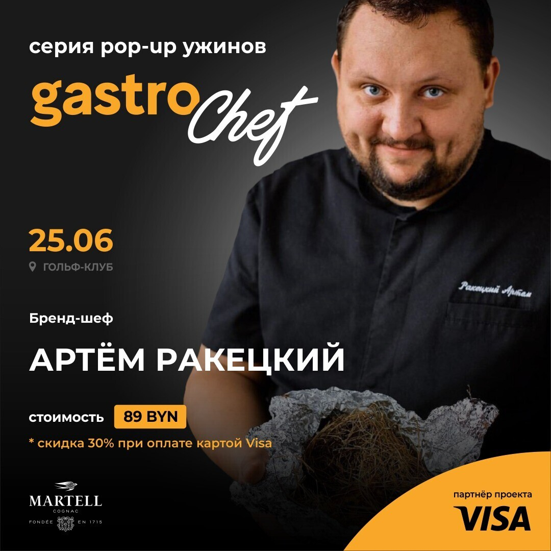 GastroChef («Гастрошеф») — проект, который призван объединить ценителей гастрономии и рассказать о талантливых шеф-поварах Беларуси. Первый ужин рассчитан на 40 человек. Он пройдет на площадке Гольф-клуба 25 июня.