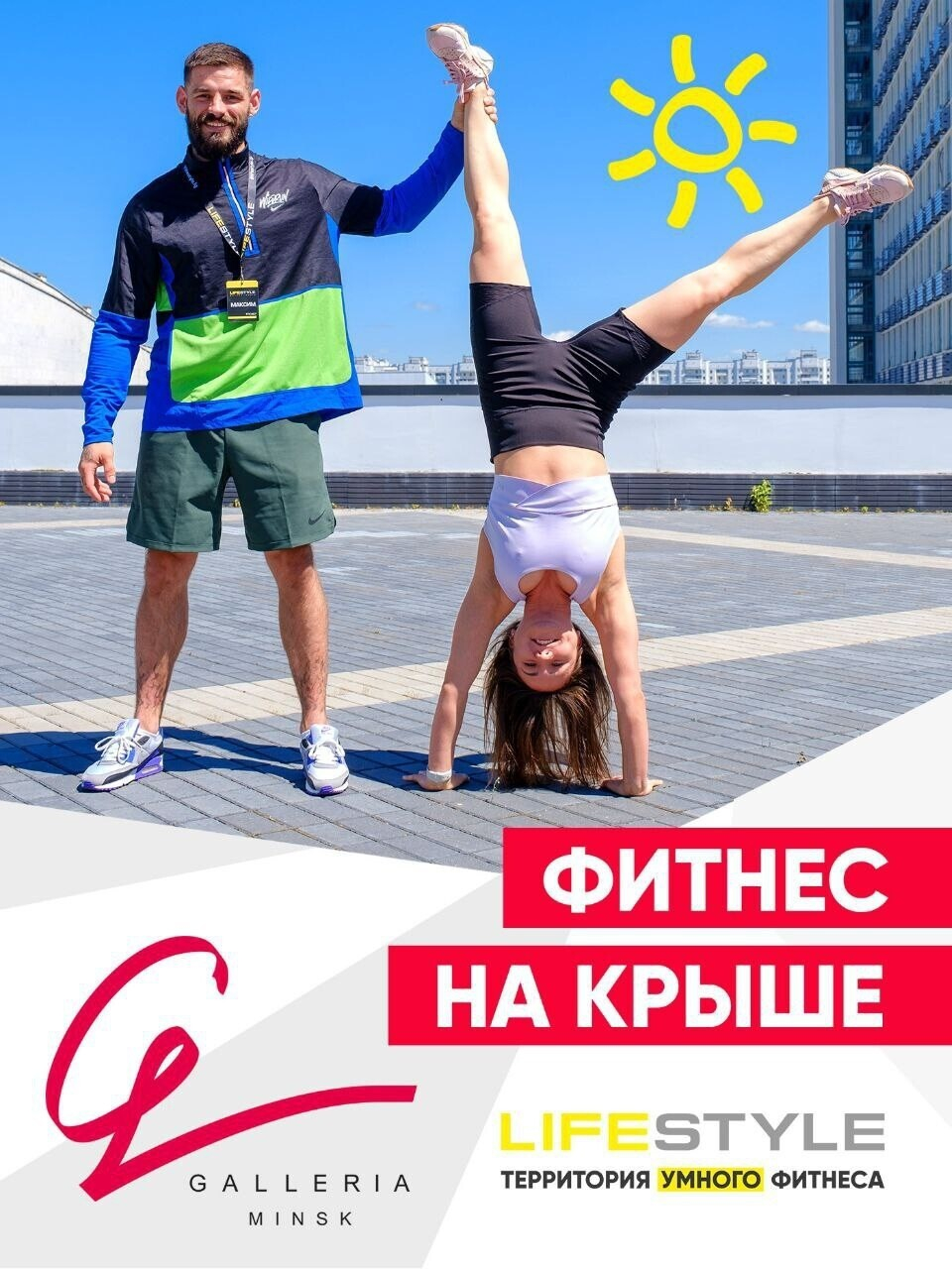 Сеть фитнес-центров Lifestyle совместно с ТРЦ Galleria Minsk запускают летний проект — бесплатные тренировки по субботам на крыше паркинга торгового центра.