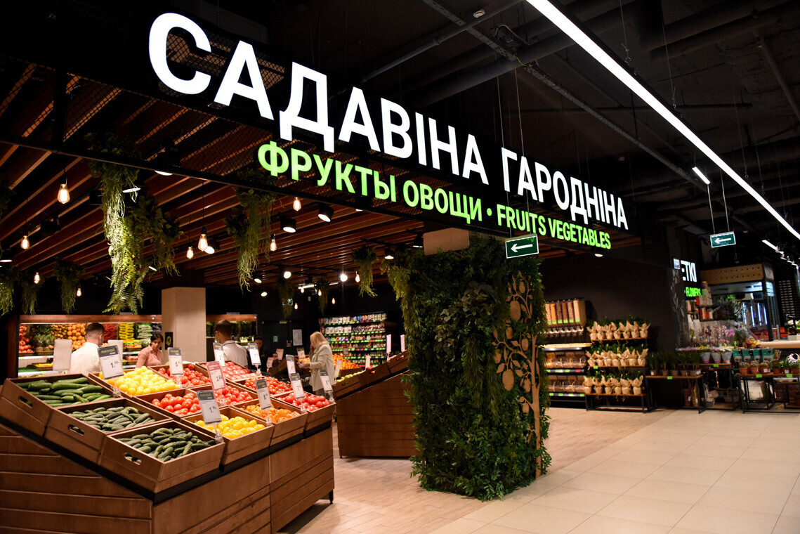 Навигация в магазине на трех языках: беларусском, русском и английском. Для покупателей поставили 16 стационарных касс и 5 касс самообслуживания.