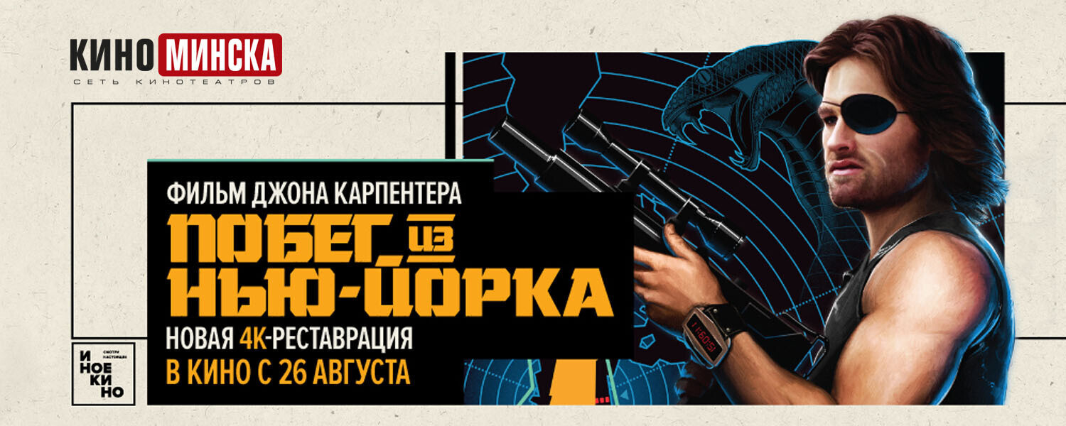 26 августа в минский прокат выходит культовый боевик «Побег из Нью-Йорка», который в этом году отмечает 40-летний юбилей. Фильм будут показывать в кинотеатрах «Пионер», «Ракета», «Центральный».
