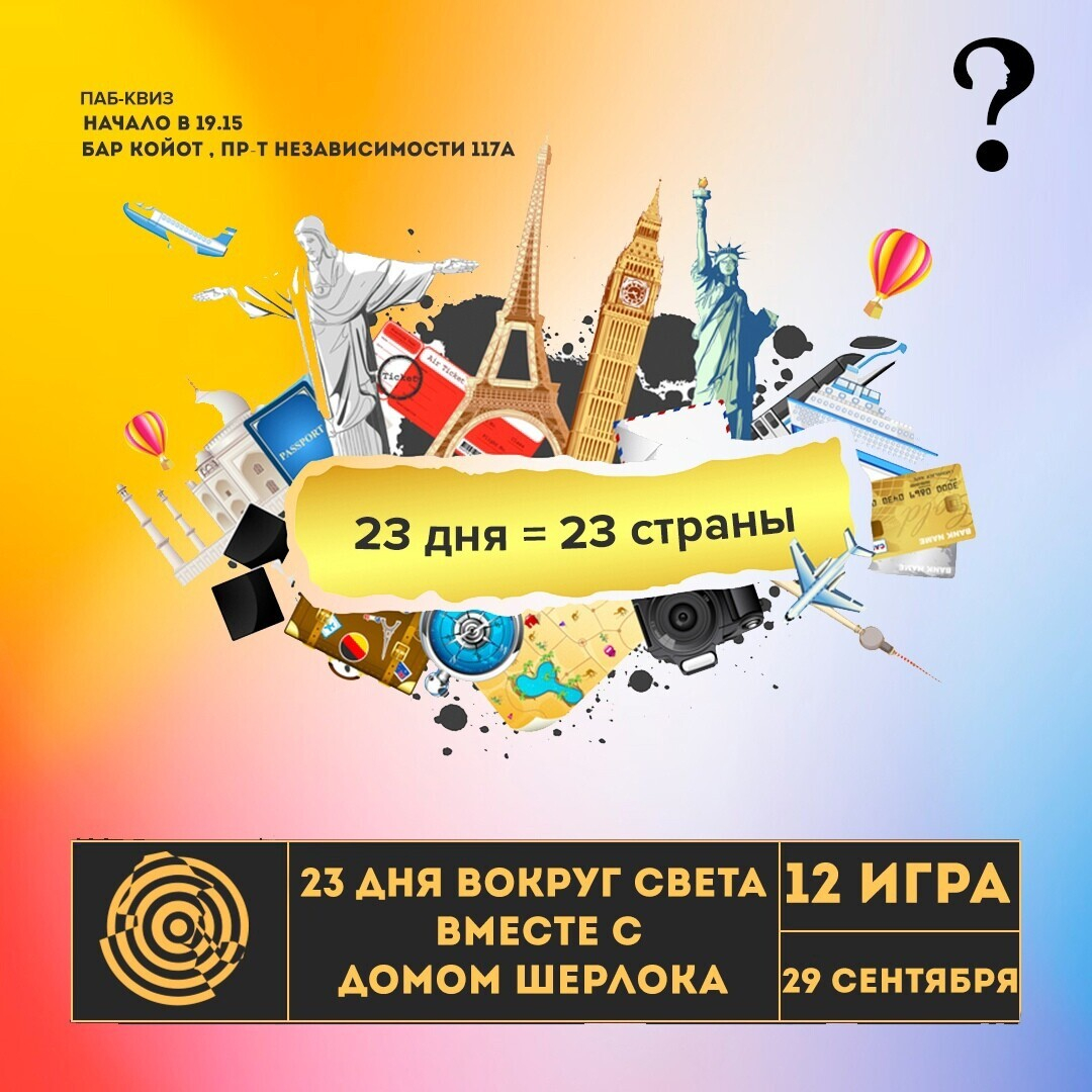 Запись и все подробности ищите на: sherlockquiz.com или по телефону: +375 (29) 231-94-87