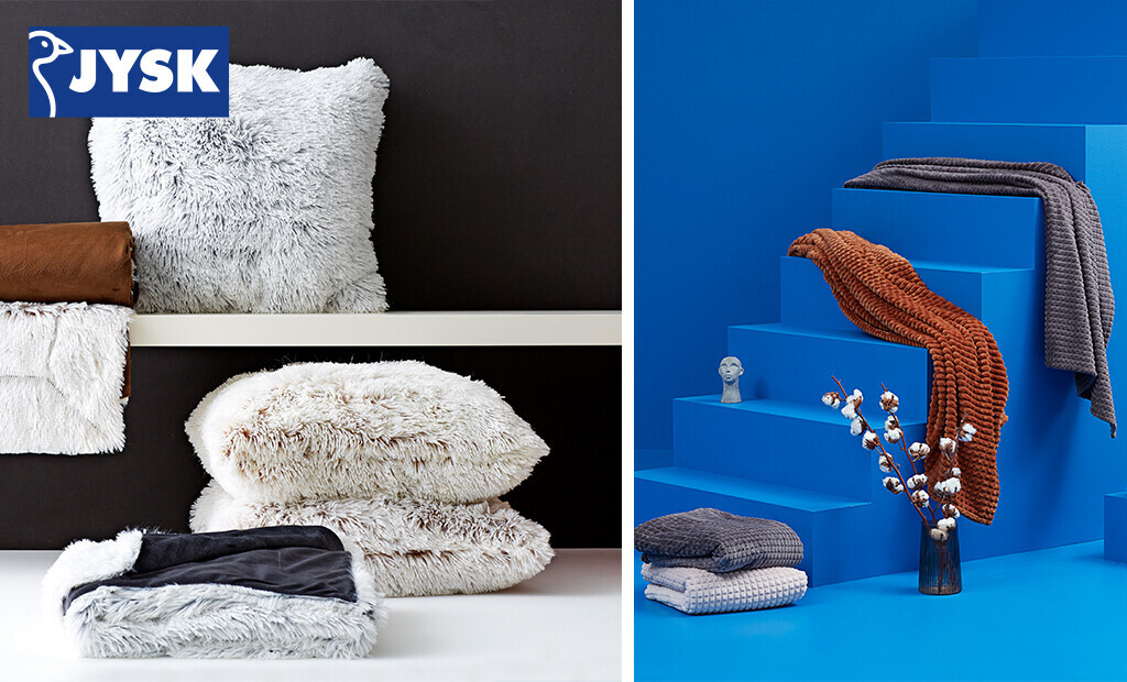 Если вы согласны с фразой, что «пледов и подушек никогда не может быть слишком много», то вы попали по адресу. В этом сезоне JYSK предлагает разнообразный ассортимент декоративных текстильных изделий на любой вкус. Чтобы создать тепло и ощущение праздника, не обязательно покупать пледы с оленями и снежинками (хотя они тоже есть в JYSK). Выберите приятную цветовую гамму и дизайн, которые понравятся и вам, и вашей семье. Если в вашем доме часто случаются битвы за самый мягкий плед, почему бы не приобрести несколько разноцветных? Например, мягкостью пледов HAGTORN можно наслаждаться в четырех ярких цветах, к которым можно подобрать сочетающиеся подушки этой же модели. Особое тепло и комфорт подарят пледы и подушки из коллекции LOTUS с искусственным мехом.