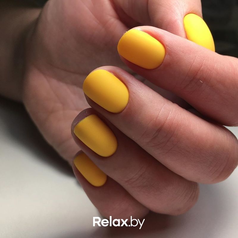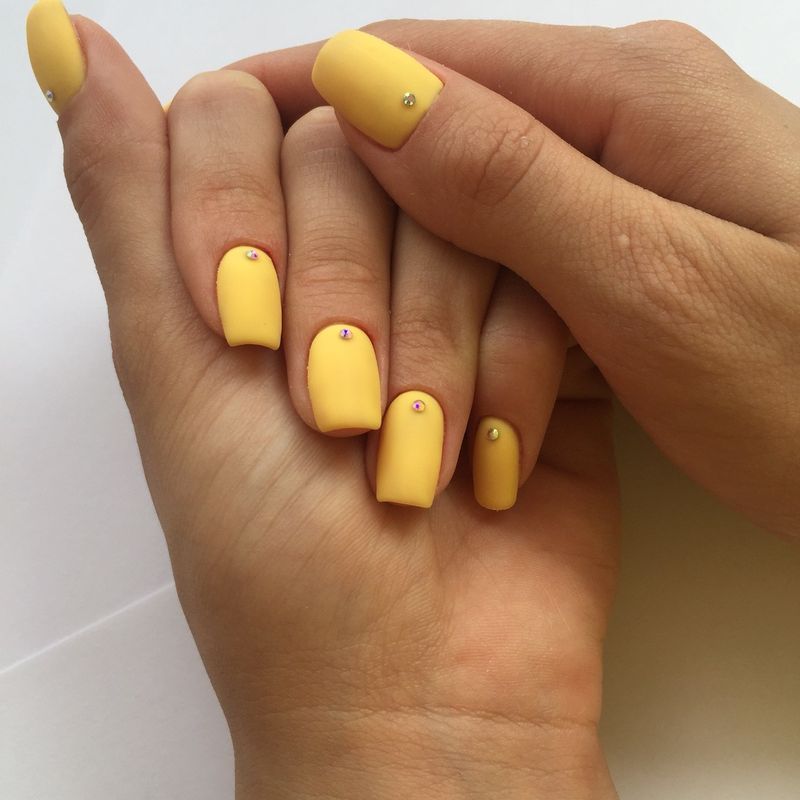 Матовый желтый маникюр