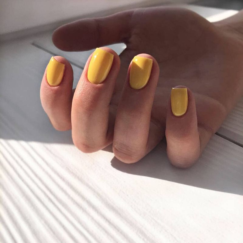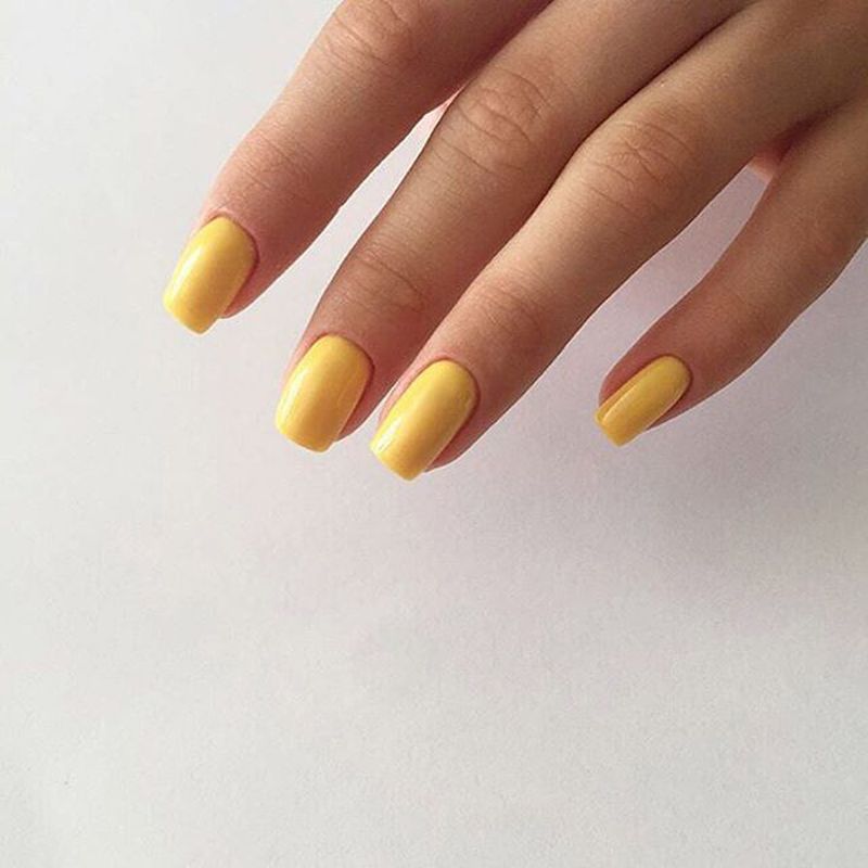 Однотонный желтый маникюр