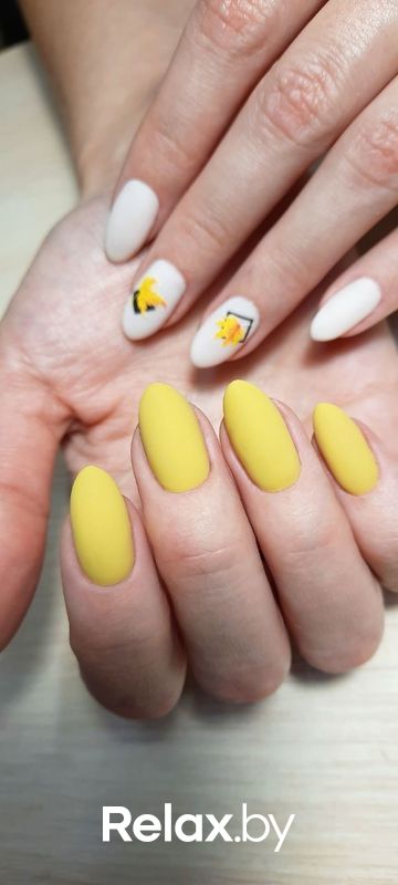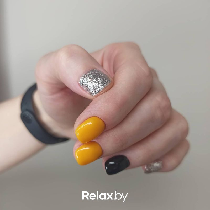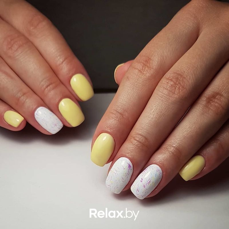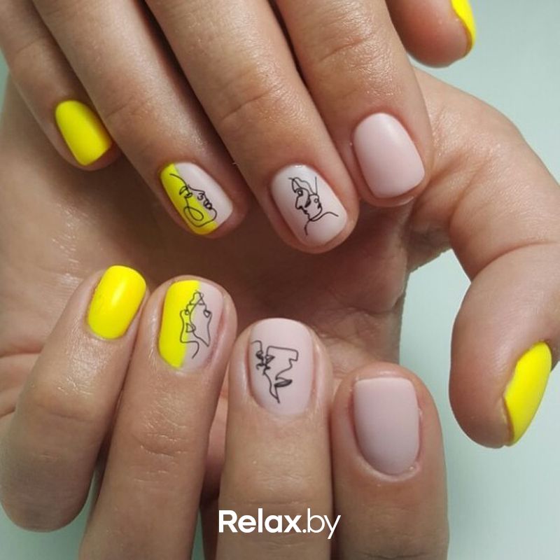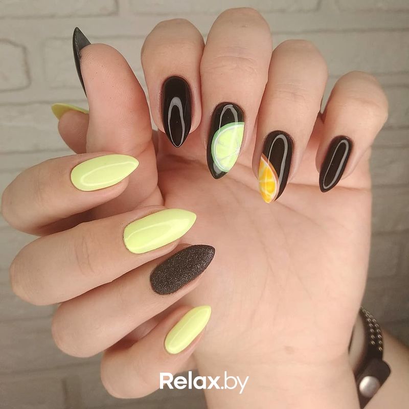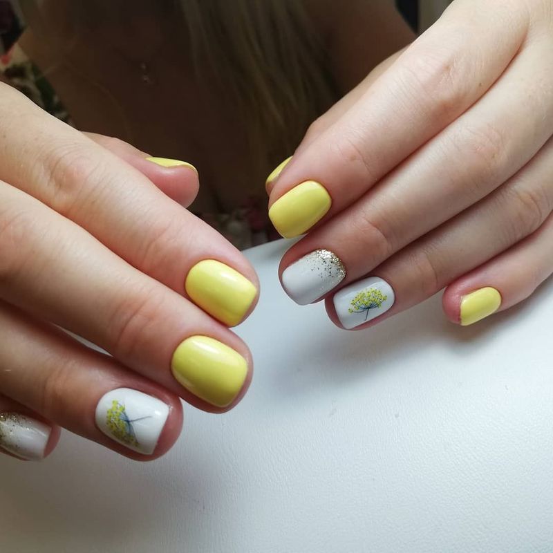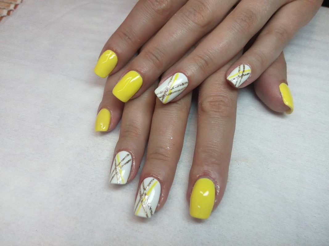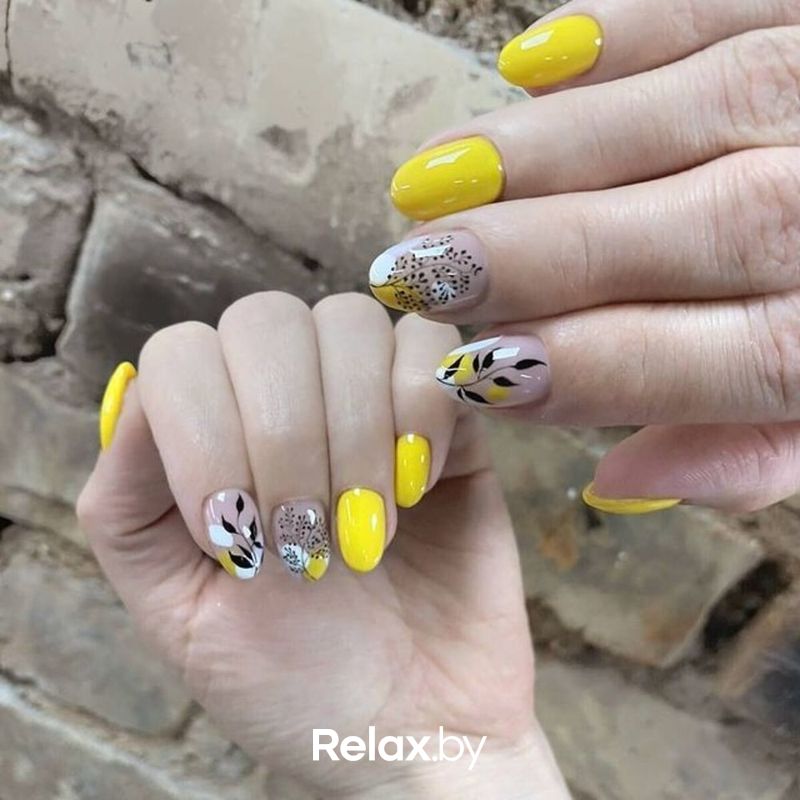 Контрастный маникюр с желтым