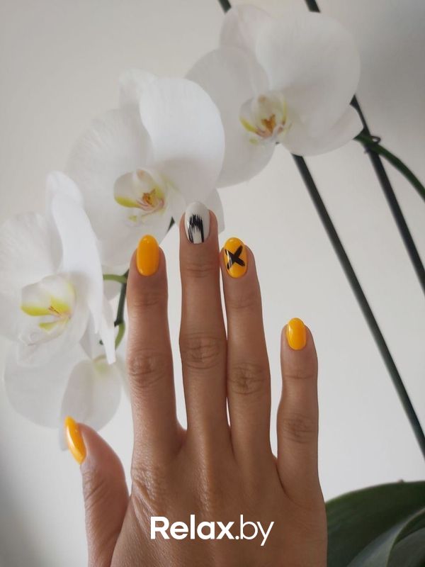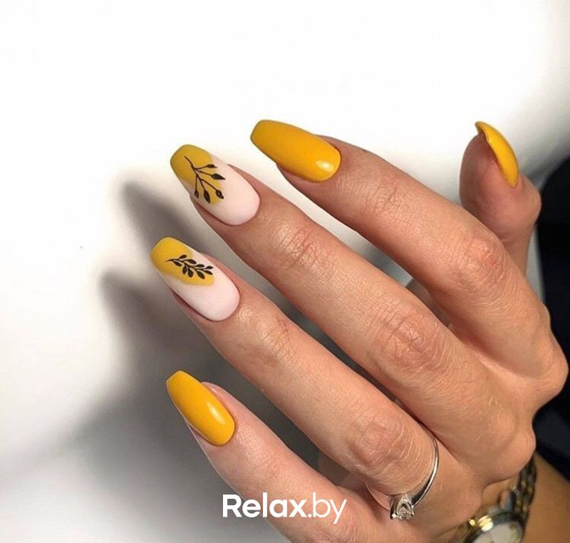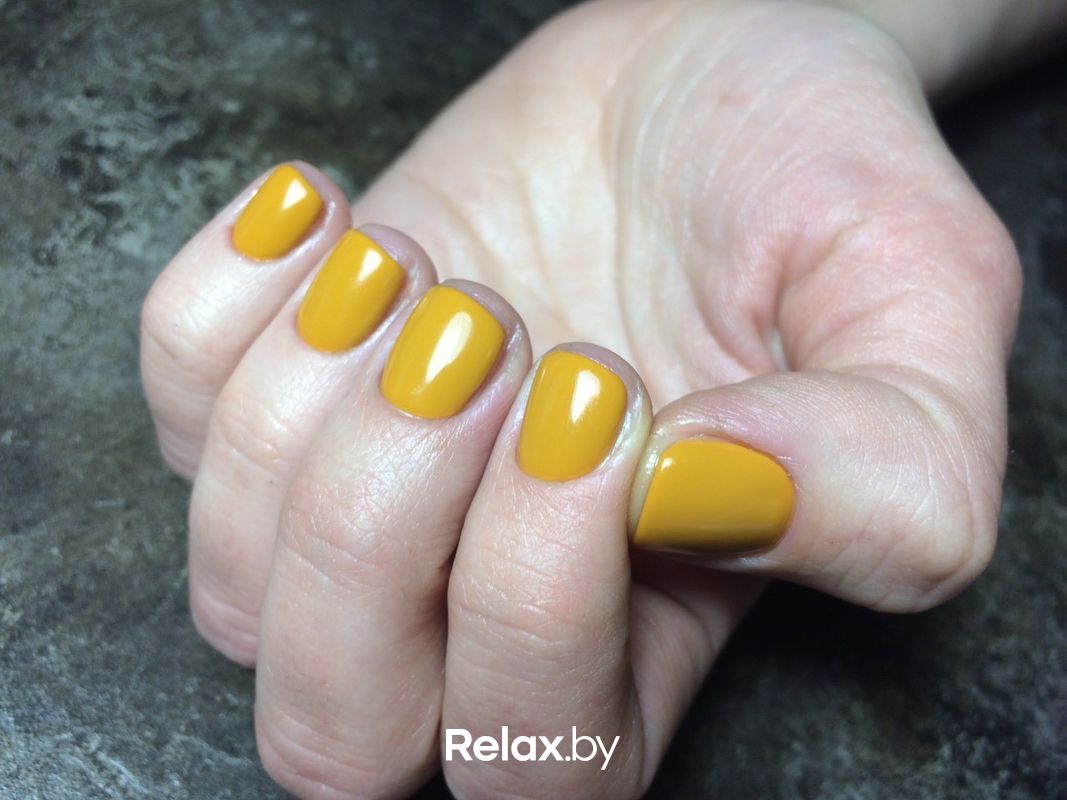 Оттенки ближе к оранжевому — лютиковый, шафрановый, янтарно-желтый — варианты для тех, кто не готов к ярко-оранжевому маникюру, но устал от нюдовых оттенков. Отличный вариант для ранней осени.