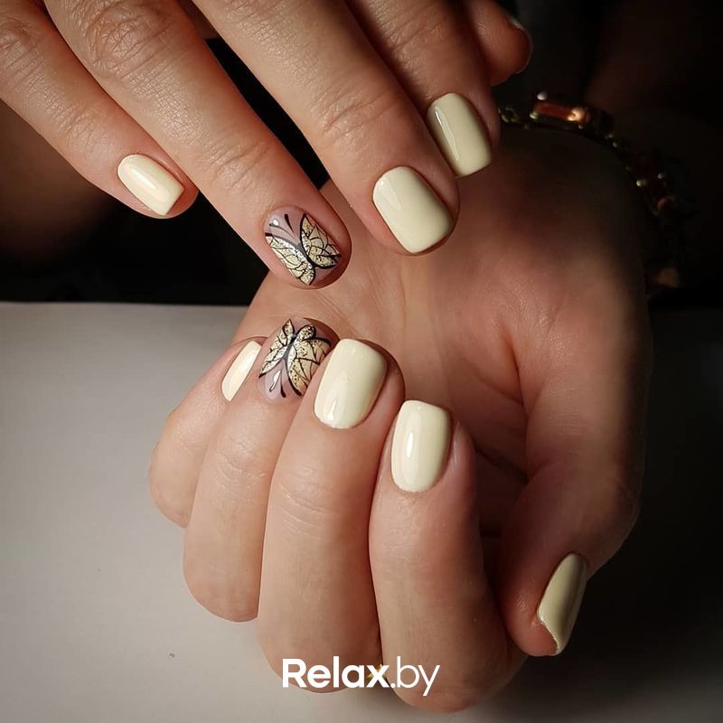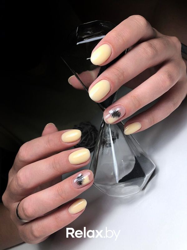 Нежно-желтый маникюр — один из вариантов нюдового. Он не будет слишком заметным, кричащим, но достаточно необычный, чтобы привлечь внимание. Такой маникюр будет хорошо смотреться на загорелой или очень светлой коже. Если руки быстро краснеют, то лучше выбрать оттенок ближе к горчичному.