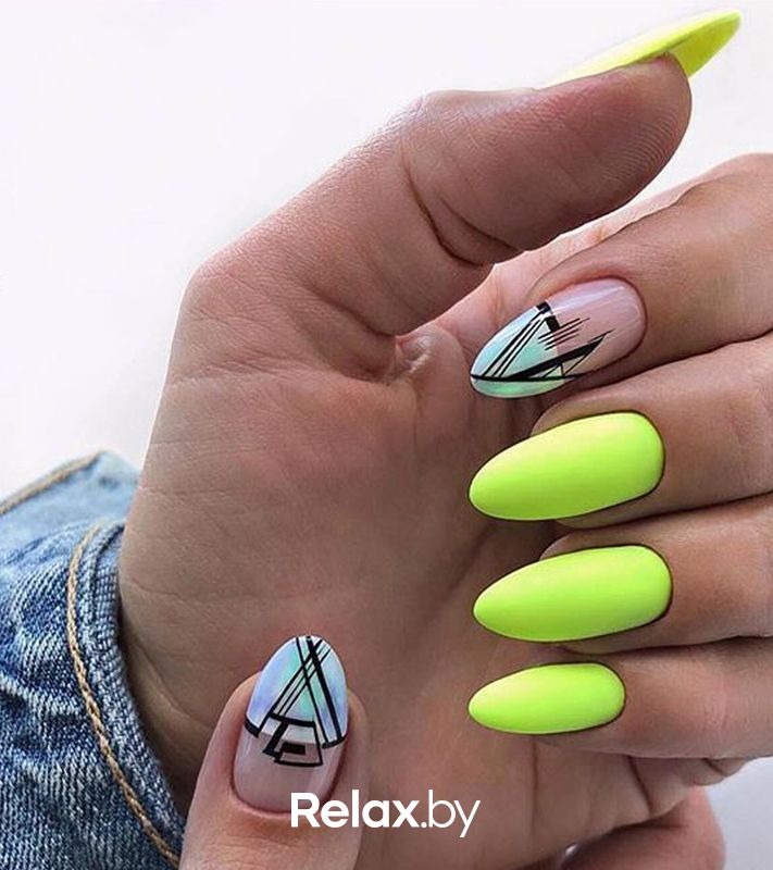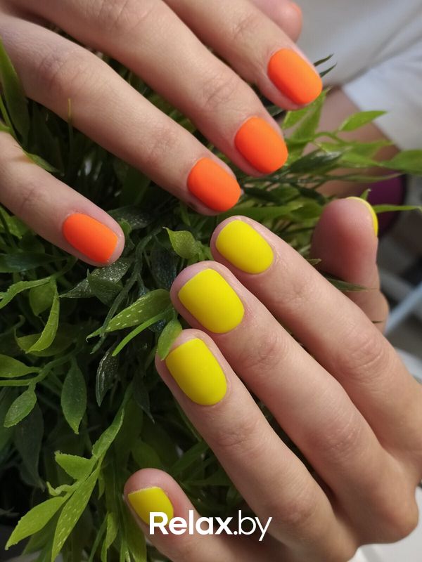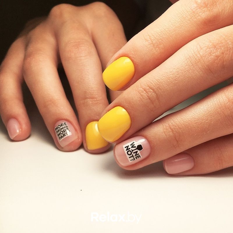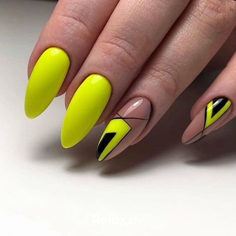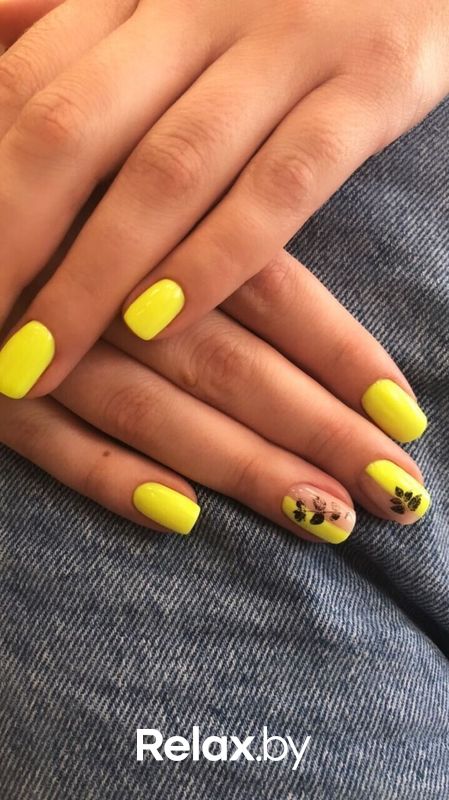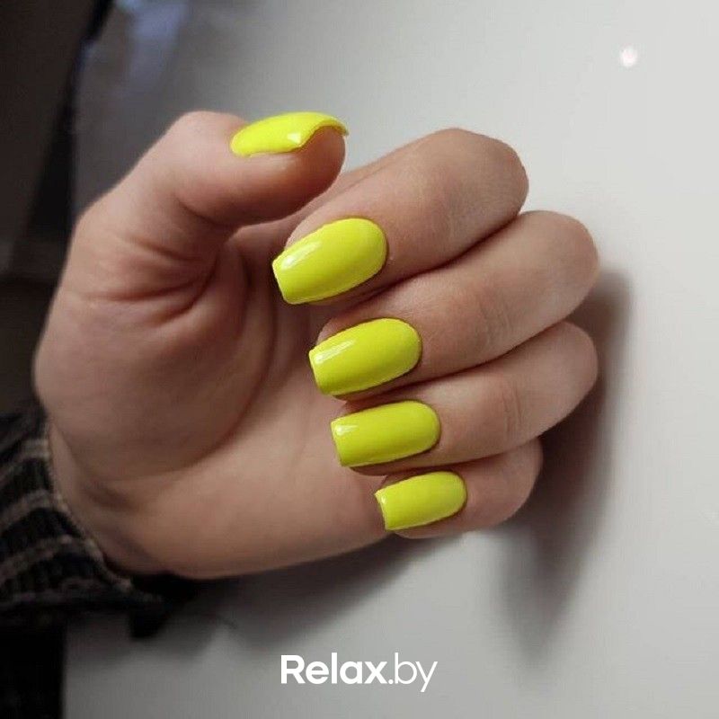 Яркий канареечный цвет, неоновый желтый подойдут тем, кто хочет сделать акцент на ухоженных руках в сочетании с любым нарядом. Неоновый желтый отлично дополнит образ на вечеринке или дискотеке.