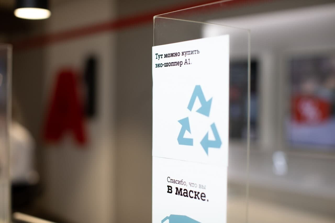 Ранее А1 свел к минимуму выдачу бесплатных пакетов из биоразлагаемого пластика клиентам, что позволило с января по ноябрь 2021 года снизить объемы их использования на треть. В поисках экологичной альтернативы компания вместе с приглашенными экспертами провела исследование, по результатам которого отказалась от вариантов использования сумок из полимеров и бумажных пакетов. Наиболее безопасным решением для окружающей среды была признана замена пластиковых пакетов на текстильные эко-шопперы.