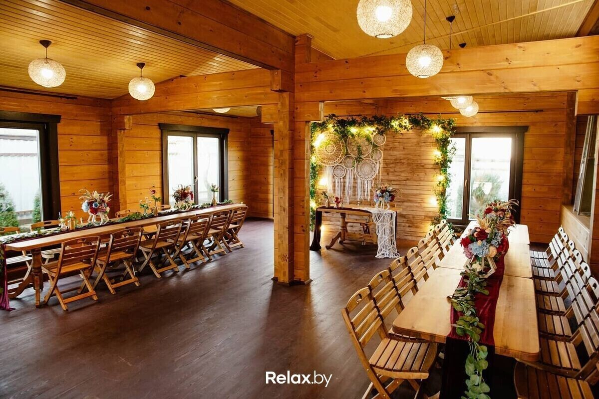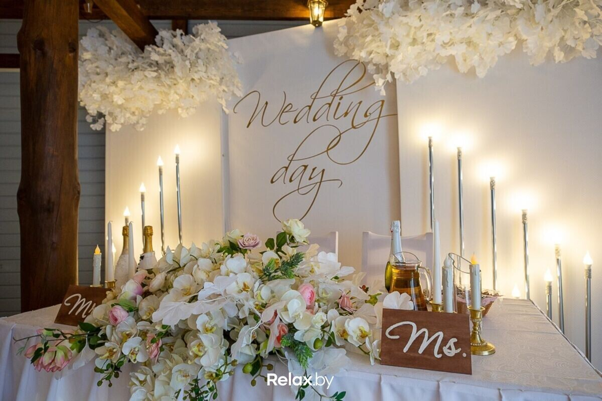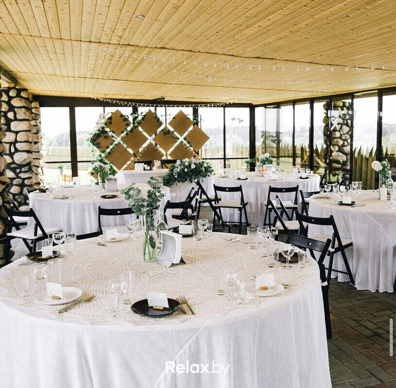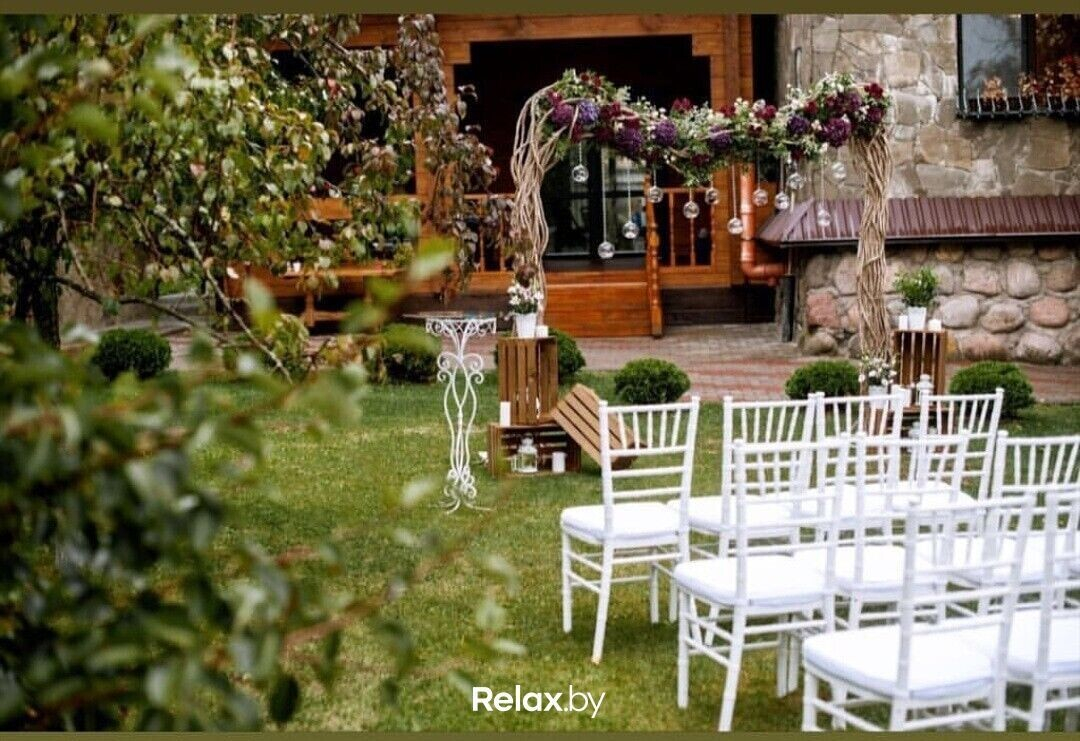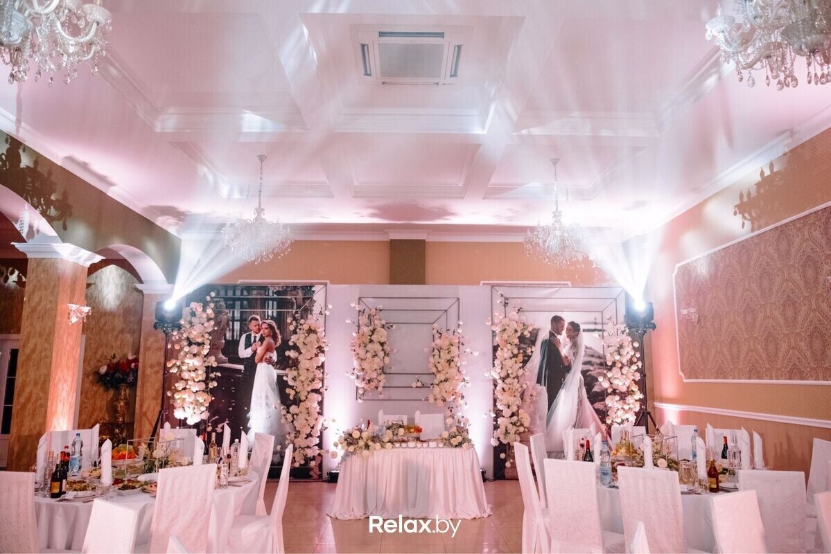 Для ценителей стиля и атмосферного дизайна. Усадьба находится всего в пятистах метрах от Минска и выгодно отличается от других. Банкетное меню для молодоженов разрабатывает шеф-повар. Составление сценария свадьбы, подбор профессионального ведущего, шоу-программа и оформление зала на свадьбу — услуги, предоставляемые усадьбой.