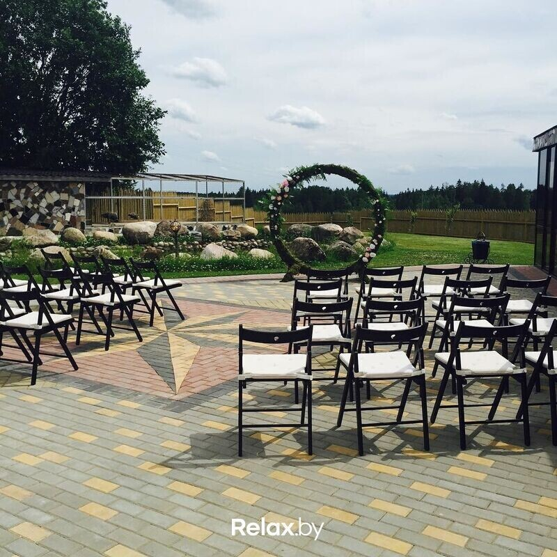 Место для небольшого семейного торжества: усадьба предлагает банкетное обслуживание на 20 человек. Ваш праздник может сопровождать живая музыка на любой вкус. На всей территории работает круглосуточная охрана, а для автомобилей есть парковка на 10 мест. Выездная регистрация проходит рядом с озером с бьющими фонтанами. Агроусадьбу окружает живописный сосновый лес, а значит чистый воздух и живописные виды идут как бонус.