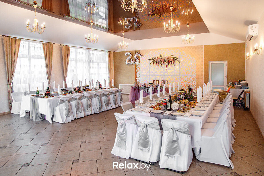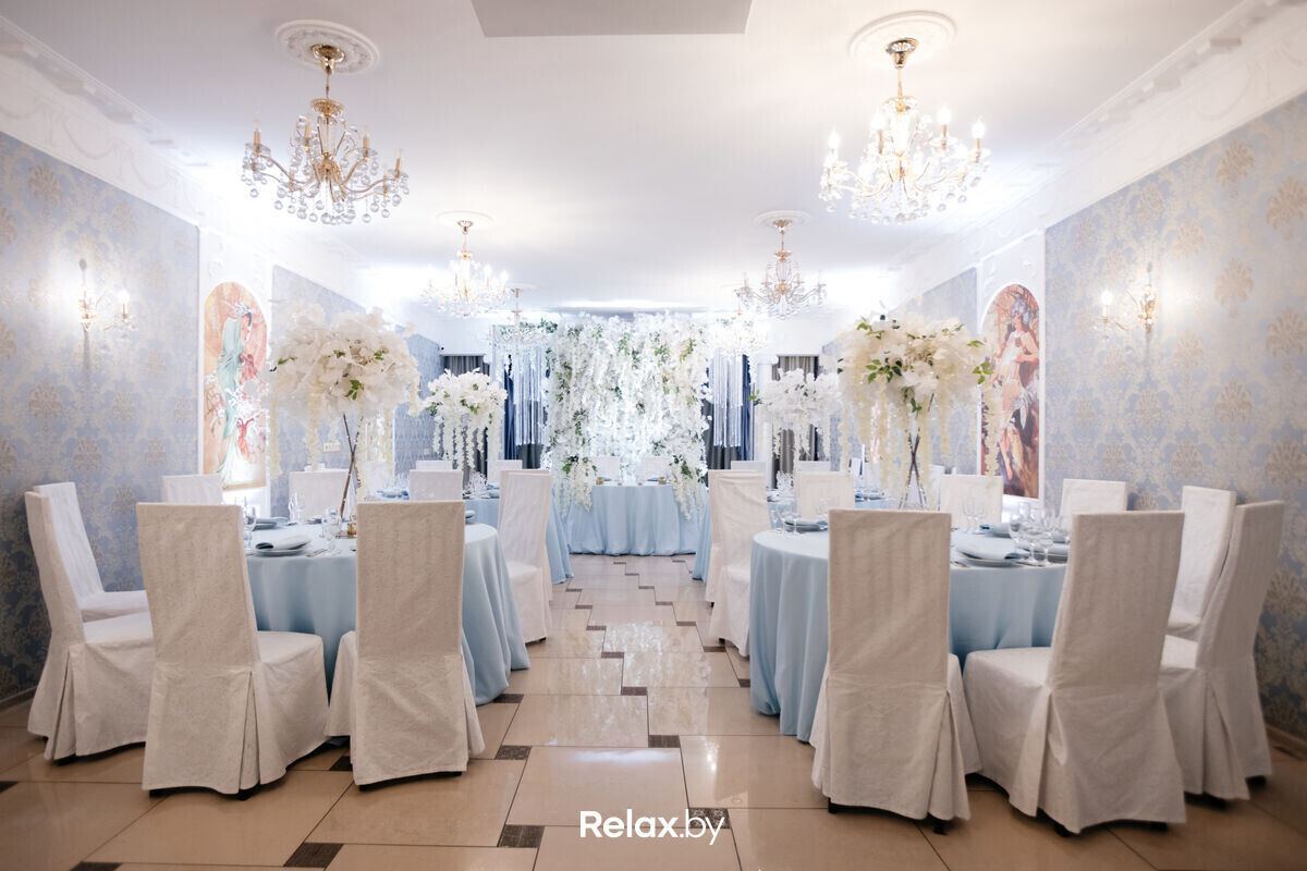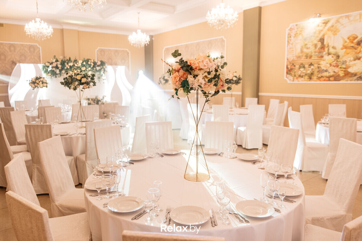 В вашем распоряжении 2 многофункциональных банкетных зала, способных вместить до 70 персон или до 130 гостей на фуршет. Гостей принимает и просторная летняя терраса, оборудованная для проведения мероприятий. Украшением зала и свадебной флористикой займутся специалисты и сделают элементы декора, исходя из предпочтений молодоженов. Со сценарием свадьбы поможет арт-менеджер, а свадебный распорядитель поможет подобрать надежных подрядчиков: кавер-бэнд, артистов, ди-джея, эксклюзивные номера и перфомансы, заказать фото- и видеосъемку свадьбы.