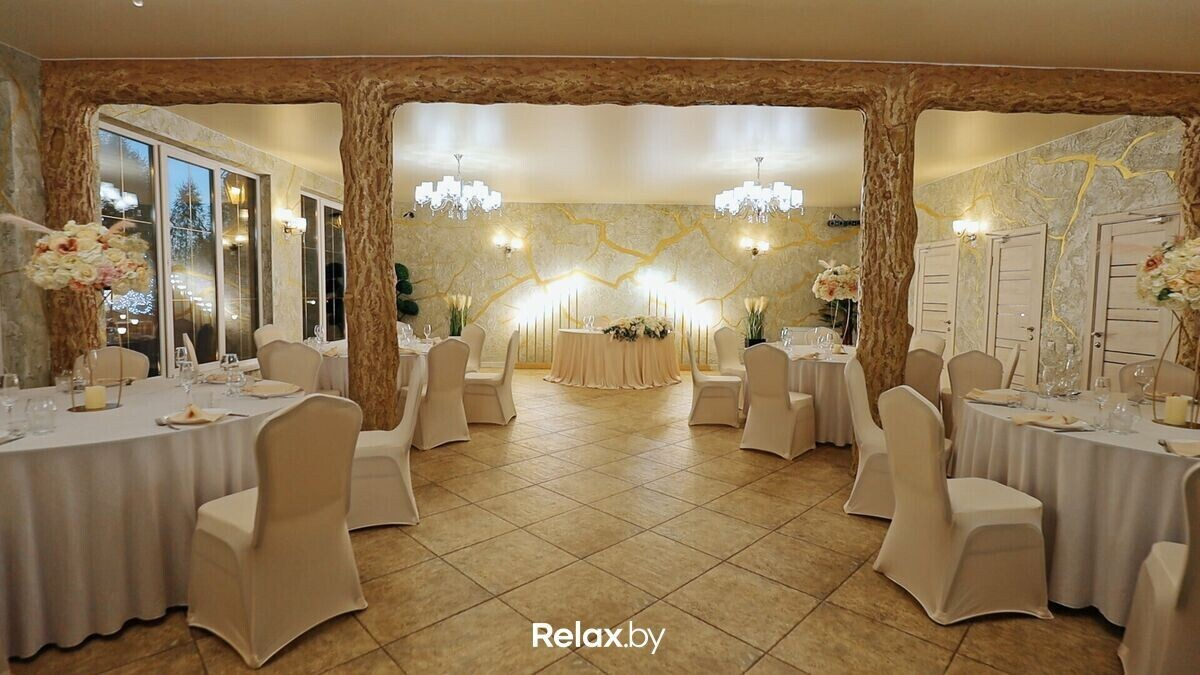 В Вашем распоряжении банкетный зал вместимостью до 60 человек. Большая территория усадьбы с основным и гостевым домами, которые оснащены отдельными кухнями, спальнями и санузлами. Среди услуг для молодоженов — составление сценария свадьбы, подбор ведущего и шоу-программы.