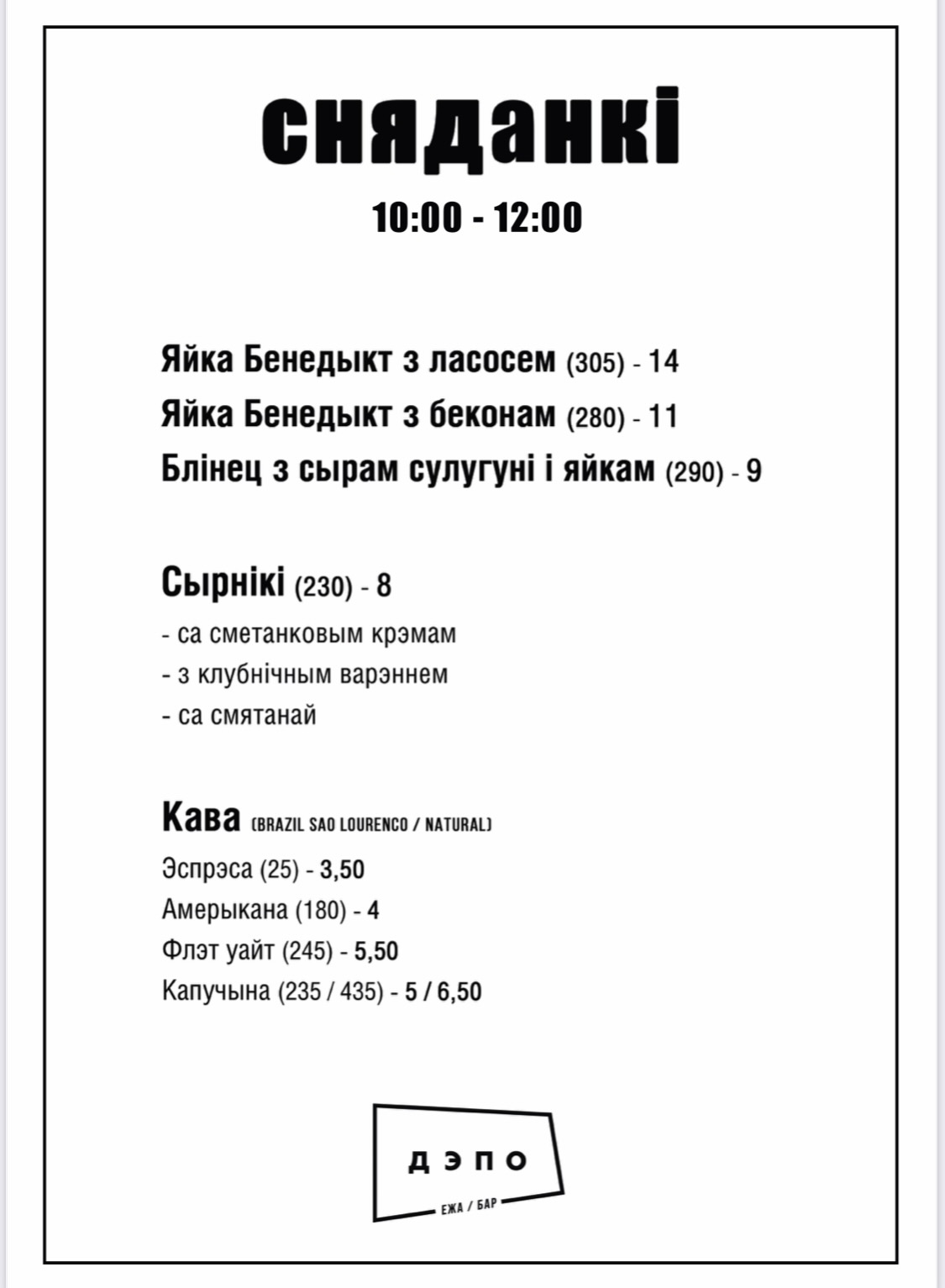 В кафе-блинной «ДЭПО#2» на Зыбицкой впервые появились завтраки. Меню получилось лаконичным, но весьма демократичным по цене. Так сырники обойдутся не дороже 8 рублей, а яйца Бенедикт с лососем — 14 рублей. Конечно, не обошлось и без фирменных блинчиков: цены и позиции смотрите ниже. Завтраки актуальны с 10:00 до 12:00 (теперь кафе ежедневно работает с 10:00 до 22:00).