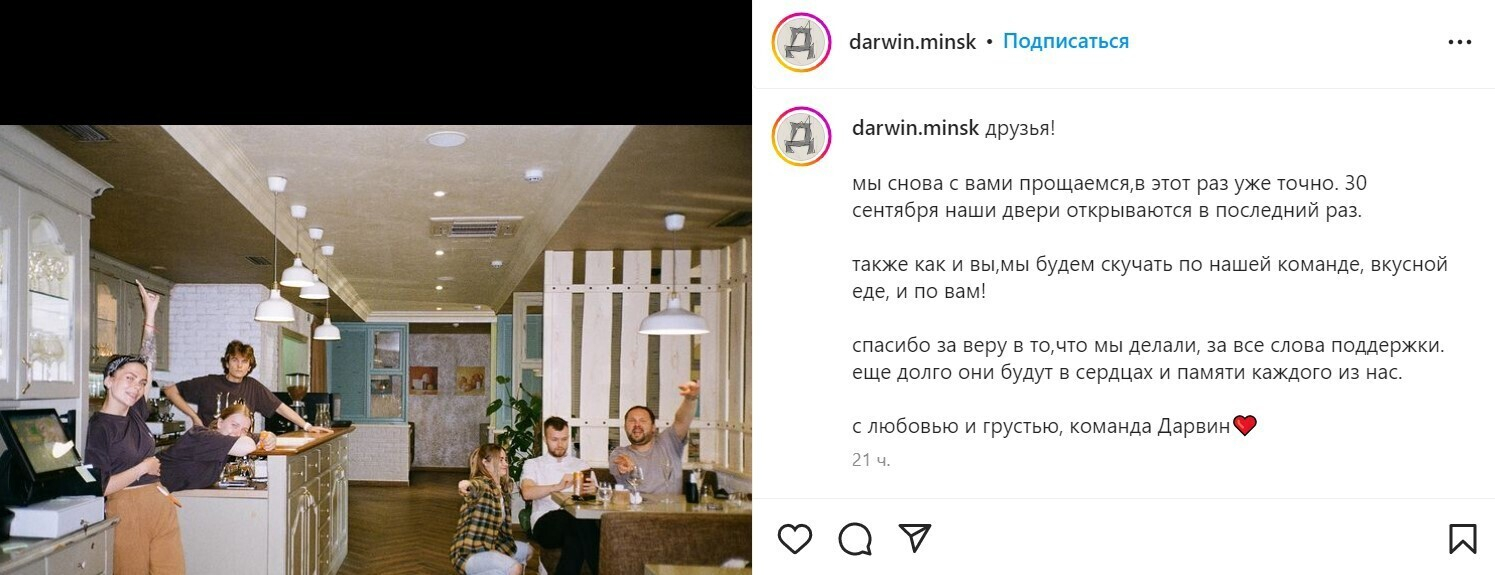 Семейный ресторан «Darwin» от команды «Дилетанты» закрывается. На этот раз окончательно