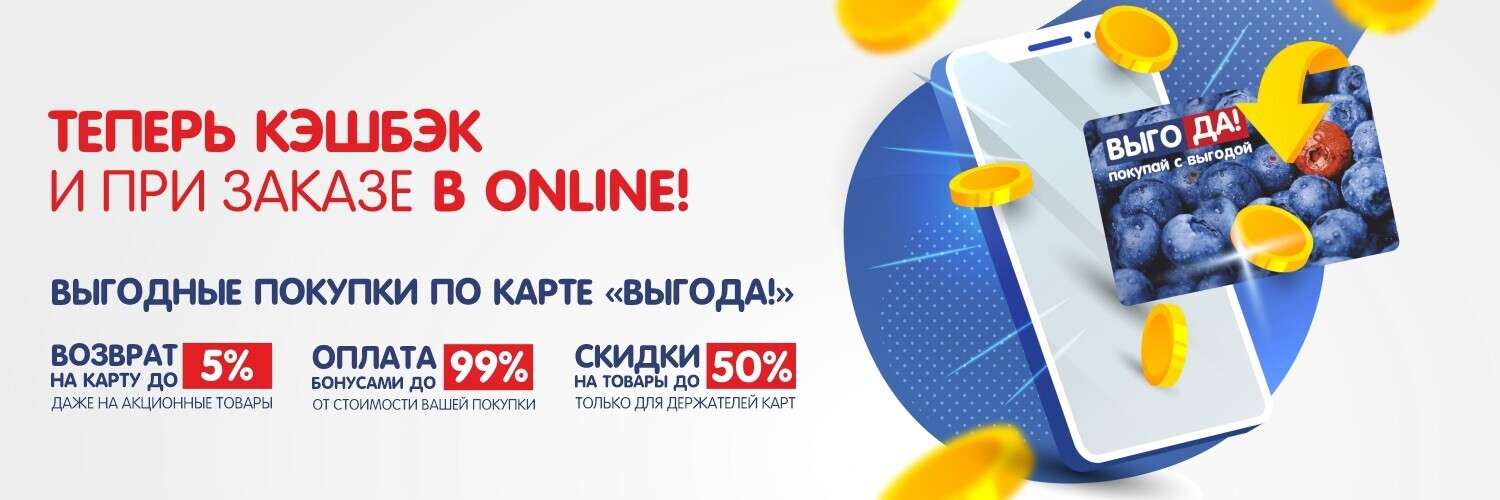 Во-первых, бонусная программа “ВЫГОДА!” дает покупателям высокий % кэшбэка после покупок. Он начисляется от суммы чека и приходит на карту в виде бонусов в течение часа. По базовым условиям кэшбэк может достигать 5%. И это немало с учетом того, что любой товар приносит бонусы, включая скидочный или акционный. В этом суть программы — можно покупать ВСЕ с ВЫГОДОЙ! Для держателей карт также доступны специальные предложения.