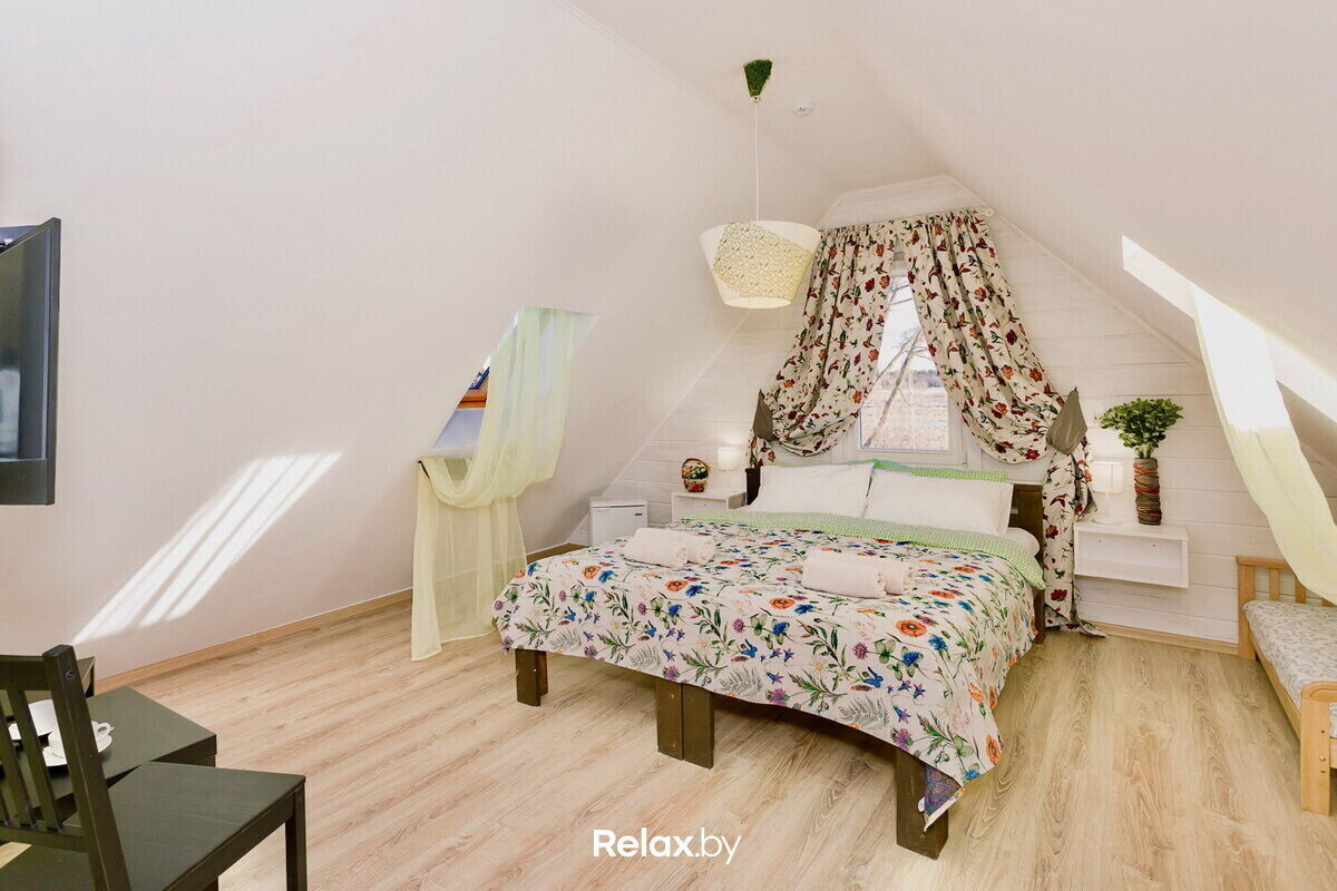 Экоотель «Кветкi яблынi» располагается вблизи Вилейского водохранилища на живописном берегу, окруженном вдохновляющей природой. Пожалуй, это идеальное место для тех, кто хочет уединиться, но боится проблем с комфортом. Разместиться здесь можно в 6 деревянных двухэтажных домиках, каждый из которых вмещает в себя 6-7 комфортабельных и полностью оборудованных номеров с уникальным дизайном. Также постояльцы могут расселиться в номерах класса люкс, полулюкс и стандарт. Доступны и ВИП-номера с балконами. Во всех комнатах есть современный санузел и холодильник. Общая вместимость всего комплекса — до 120 человек.