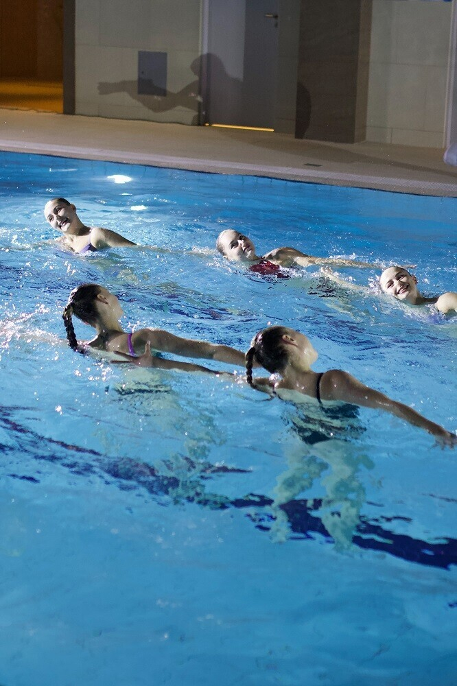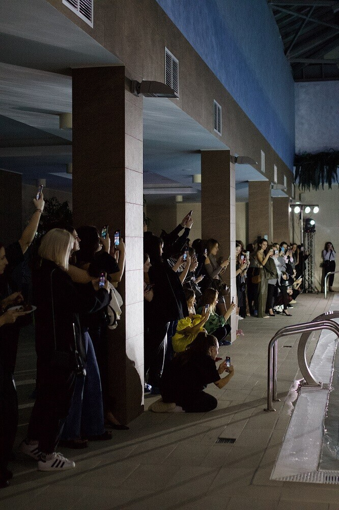 Примечательно и то, что новые модели бренда демонстрировали профессиональные синхронистки, что задавало показу определенный ритм. В качестве подиума была выбрана спа-зона гостиничного комплекса Victoria & Spa. Просторное помещение с бассейном было готово комфортно вместить немалое количество гостей, которые расположились со стороны с шезлонгами.