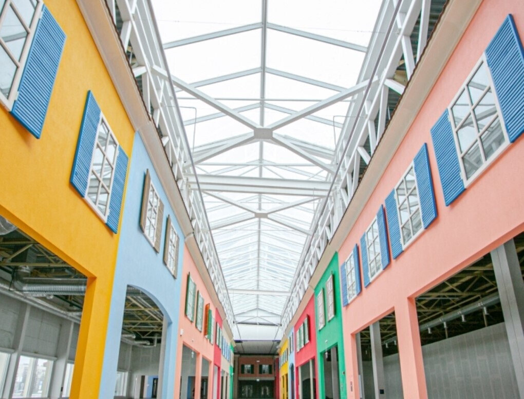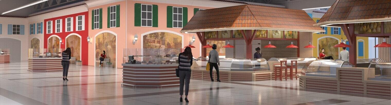 Интересно выглядит и дизайн-проект. Торговая галерея оформлена в виде старинной улочки с зенитным освещением. Обязательно расскажем об открытии — следите за новостями.