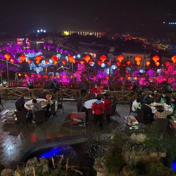 Найти забронированный столик помогает персонал, и резерв тут обязателен — поток посетителей огромный. К слову, за сутки гостей бывает столько, сколько проживает в небольшом городском округе Китая.