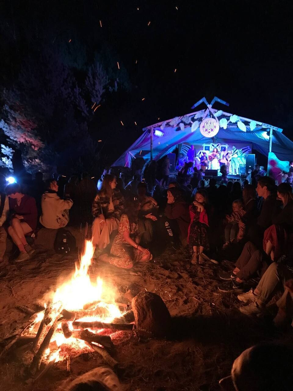 Точка притяжения, где все собираются около костра. Мы варим согревающие напитки, слушаем выступление приглашенных музыкантов, а также совместно поем, играем на этно-инструментах и смотрим огненное шоу.