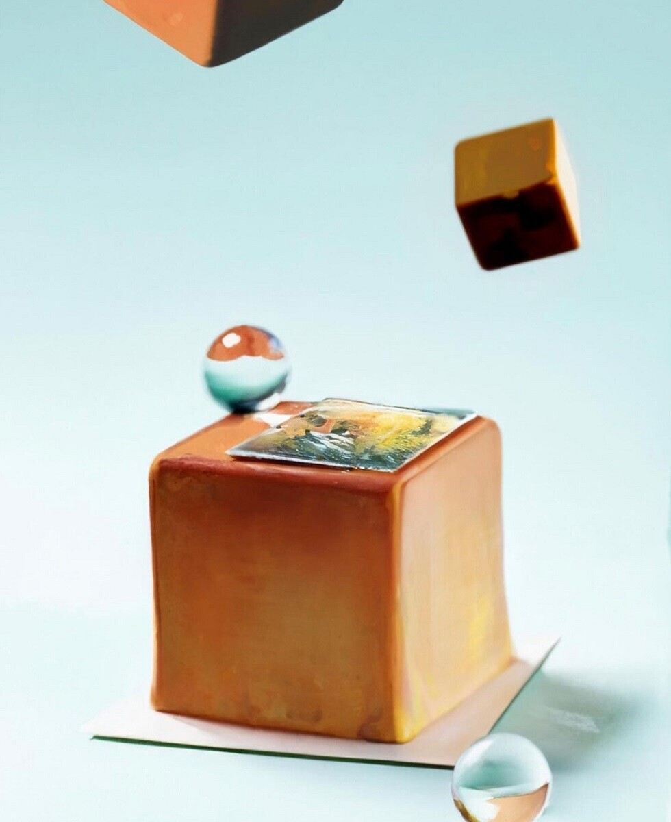 - Пирожное «Свежесть». Олицетворение любимых цветов художника: синий, голубой, песочный.