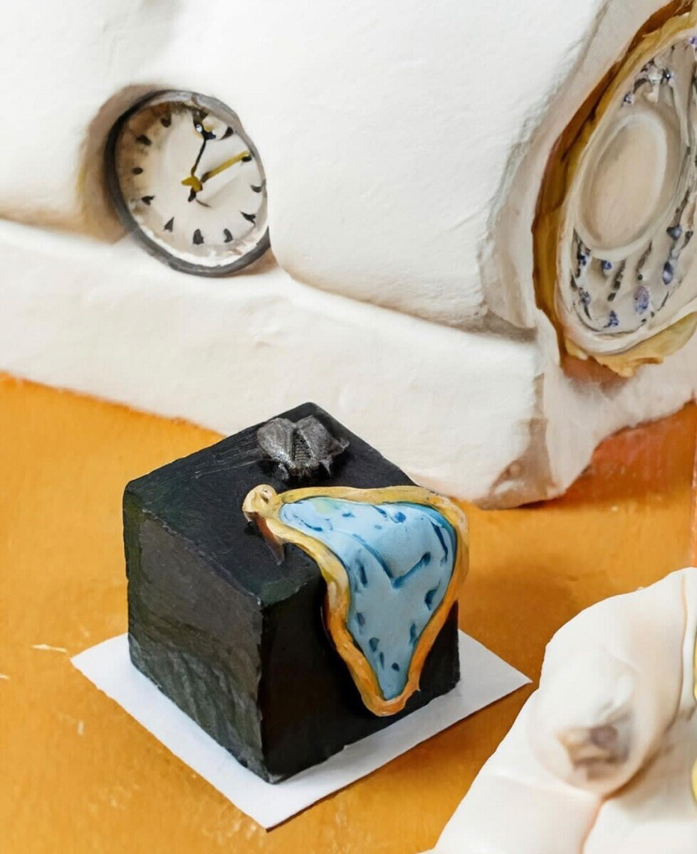 - Пирожное «Клубничный мохито». Часы посвящены знаменитой картине «Постоянство памяти».