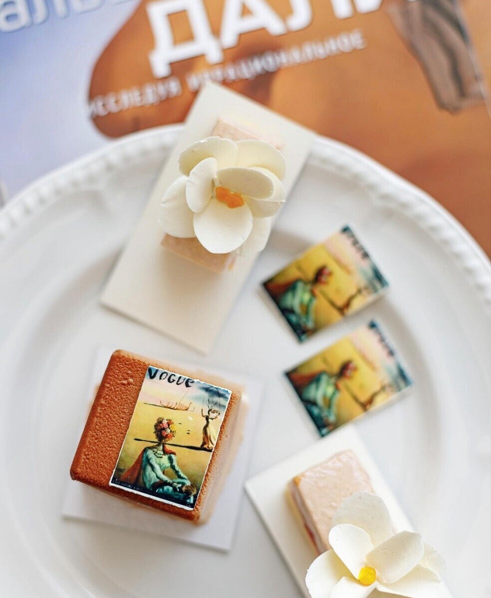 - Изюминка этой коллекции — экзотическое пирожное с гуавой и цветком жасмина «Сан Оноре». Дали любил жасмин и часто рисовал себя с цветком за ухом.