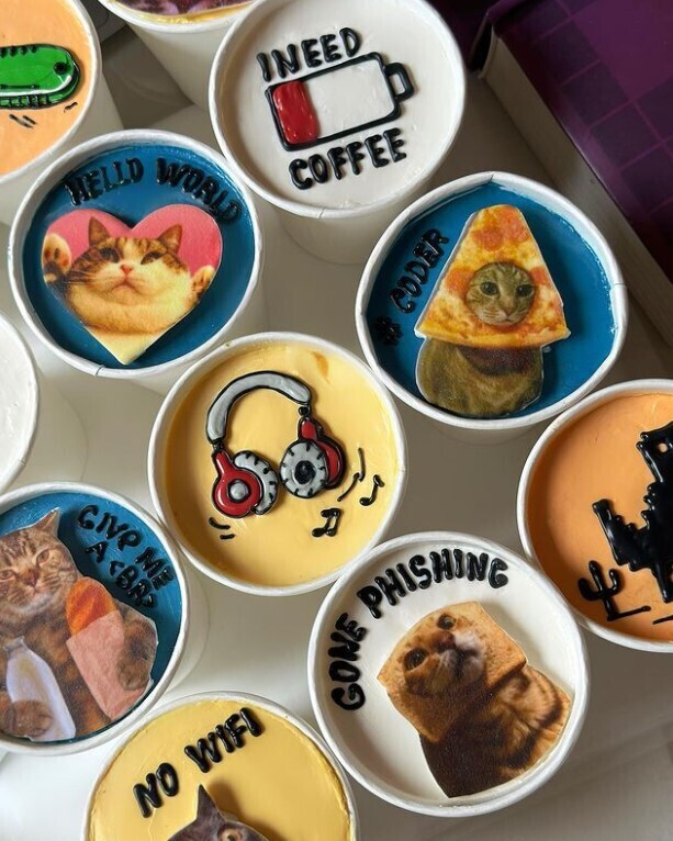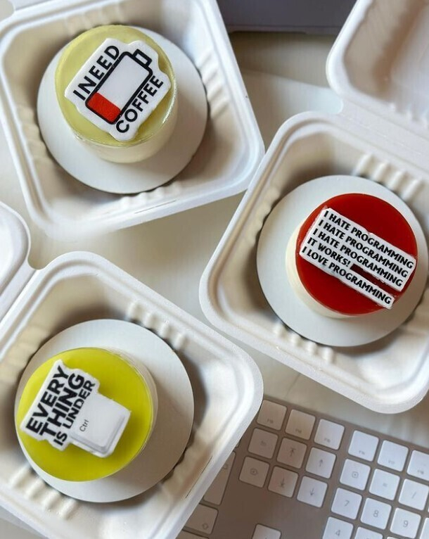 Кондитерская Мousse как всегда креативно обрабатывает инфоповоды. Так сейчас команда выпустила серию десертов, приуроченных к Дню программиста, который отмечают 13 сентября. Заказать можно пряник, пирожное, тортик или торт в стакане. На торте декор может быть от кондитерской или ваш авторский по предварительному заказу.