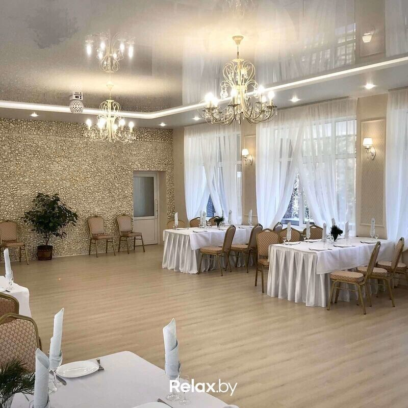 Площадь ресторана — 773,2 кв. м. Вместе с ним продают гостиничный домик (156,2 кв. м) и баню (48 кв. м). Сейчас ресторан принадлежит филиалу Минского областного потребительского общества в Логойске.