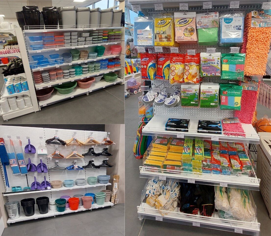В новом магазине впервые появился отдел с хозяйственными товарами, в котором вы сможете найти все необходимое для уборки дома и офиса.