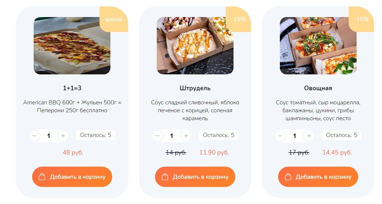 Скидка у ребят приятная — от 15%. Но мы выбрали предложение еще слаще: 1+1=3 (то есть, три римские пиццы нам обойдутся всего в 48 рублей). Пару кликов с быстрой регистрацией — заказ оформлен. Что важно, заказ можно оплатить онлайн картой любого банка через платежную систему BePaid, что удобнее и быстрее, чем оплачивать в заведении на месте.