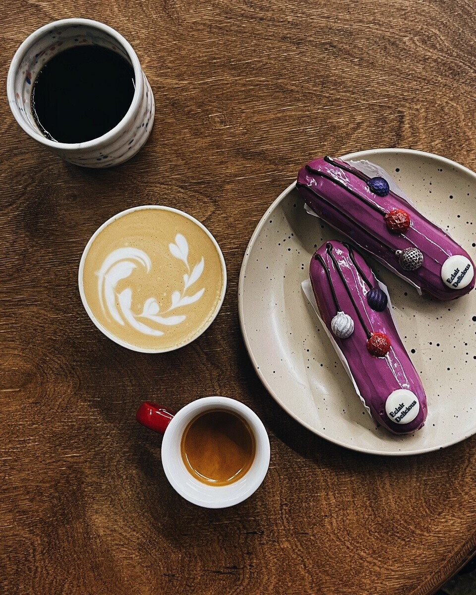 Капучино / эспрессо / фильтр (на выбор) на зерне из Колумбии анаэробной ферментации + эклер со смородиной.