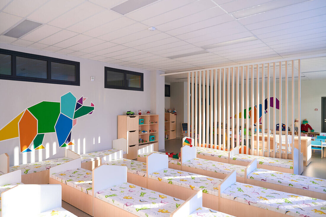 Детский сад рассчитан на 230 детей. Для каждой группы обустроены гардеробная, комната для занятий и спальня. В уборных установлены специальные мини-умывальники и раковины, подобранные под средний рост дошколят. Чтобы снизить нагрузку на глаза детей используются люминесцентные лампы.