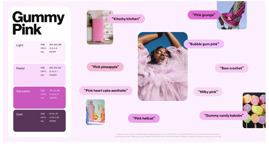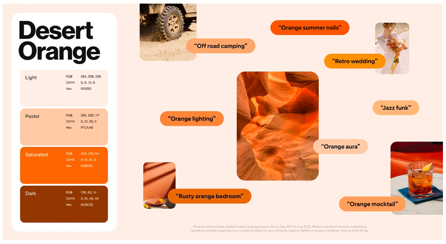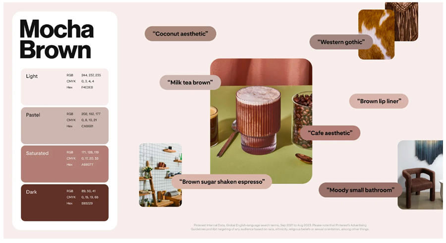 Среди главных оттенков 2024 года по версии Pinterest – Desert Orange (оранжевая пустыня), Aqua Blue (синяя вода), Moss Green (зеленый мох), Mocha Brown (коричневый мокко) и сладкий Gummy Pink (розовый мармелад). Описание каждого из них звучит многообещающе.