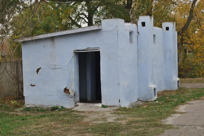 Туалет площадью 59 квадратных метров находится в центре города, на улице Пулихова. Он был построен в 1966 году и работал около 30 лет, после чего закрылся и обветшал. В 2010 году его купила частная компания "АбсолютИнвестСтрой" и начала реконструкцию, которая, впрочем, так и не закончилась, и до сих пор здание огорожено и накрыто дерюгами.