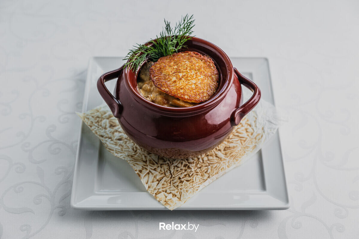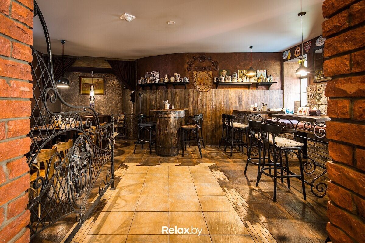 Главный акцент в меню заведения — блюда белорусской и европейской кухонь. Любители классики найдут блюда в исполнении традиционных рецептур, желающим испробовать чего-то особенного будут предложены охотничьи рецепты. В теплое время года шеф-повар готовят на открытом огне.