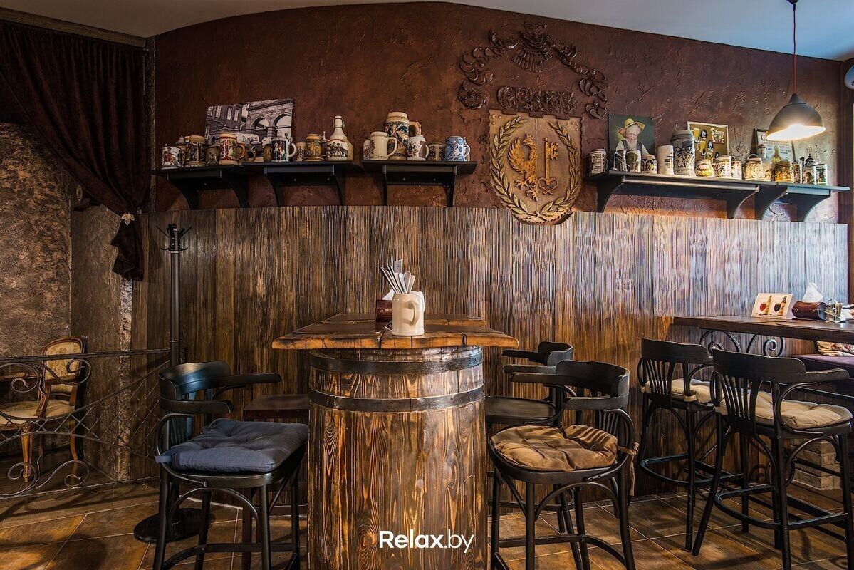 Концепция ресторана в разнообразии блюд белорусской, немецкой и европейской кухни. А к ним — широкий ассортимент напитков. Отдельного внимания заслуживает башня из баклажан, колдуны из филе карпа, цыпленок в брусничном соусе с вареньем из сосновых шишек, традиционный баварский кнодель с соусом из белых грибов.