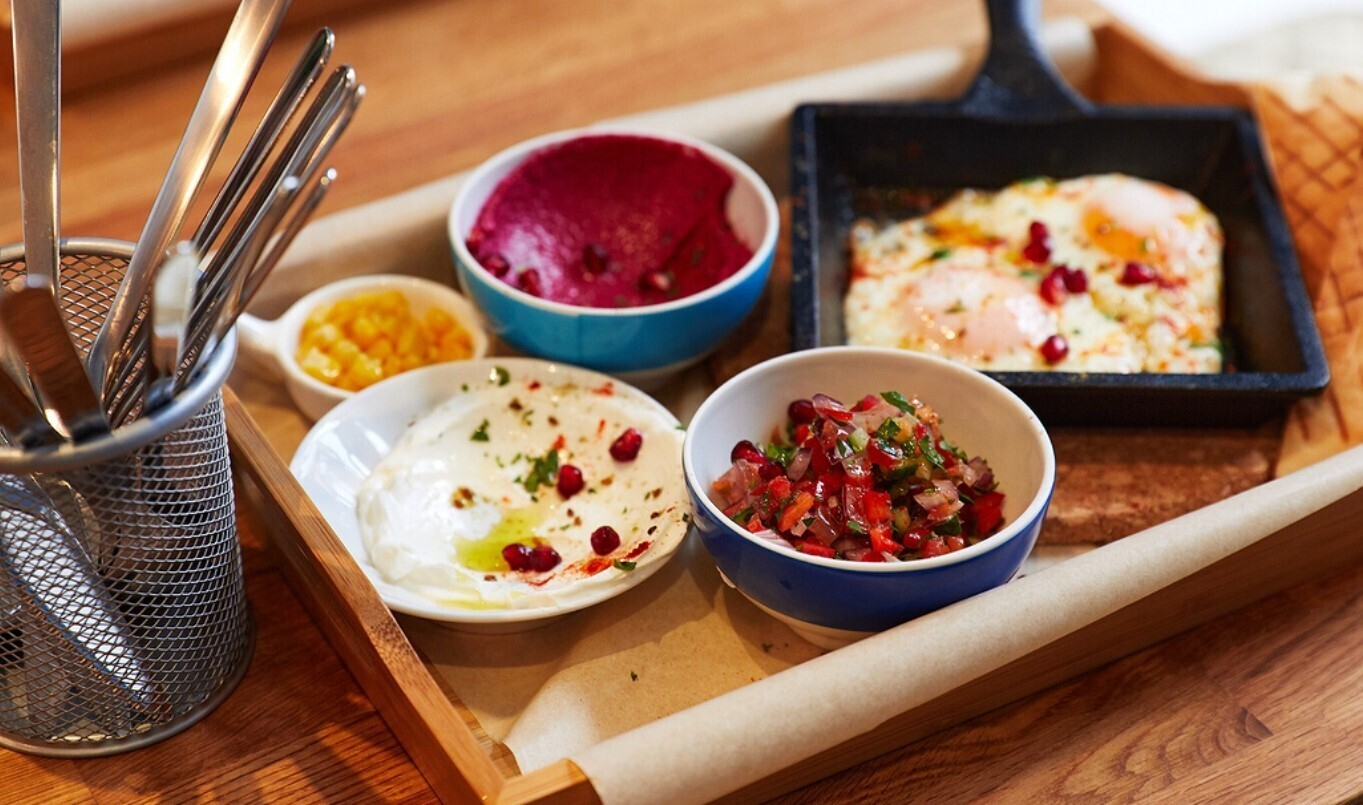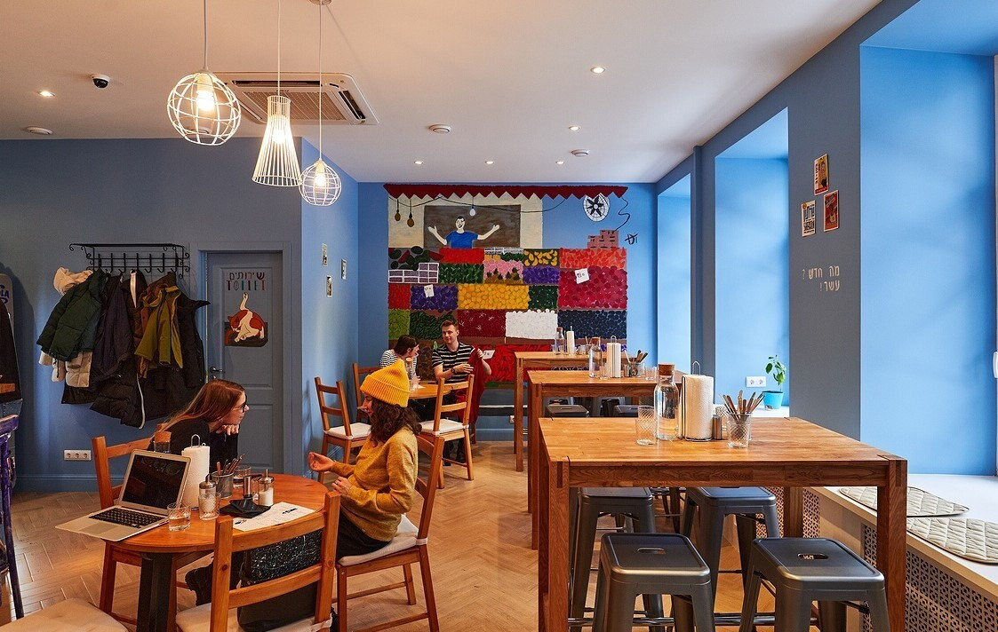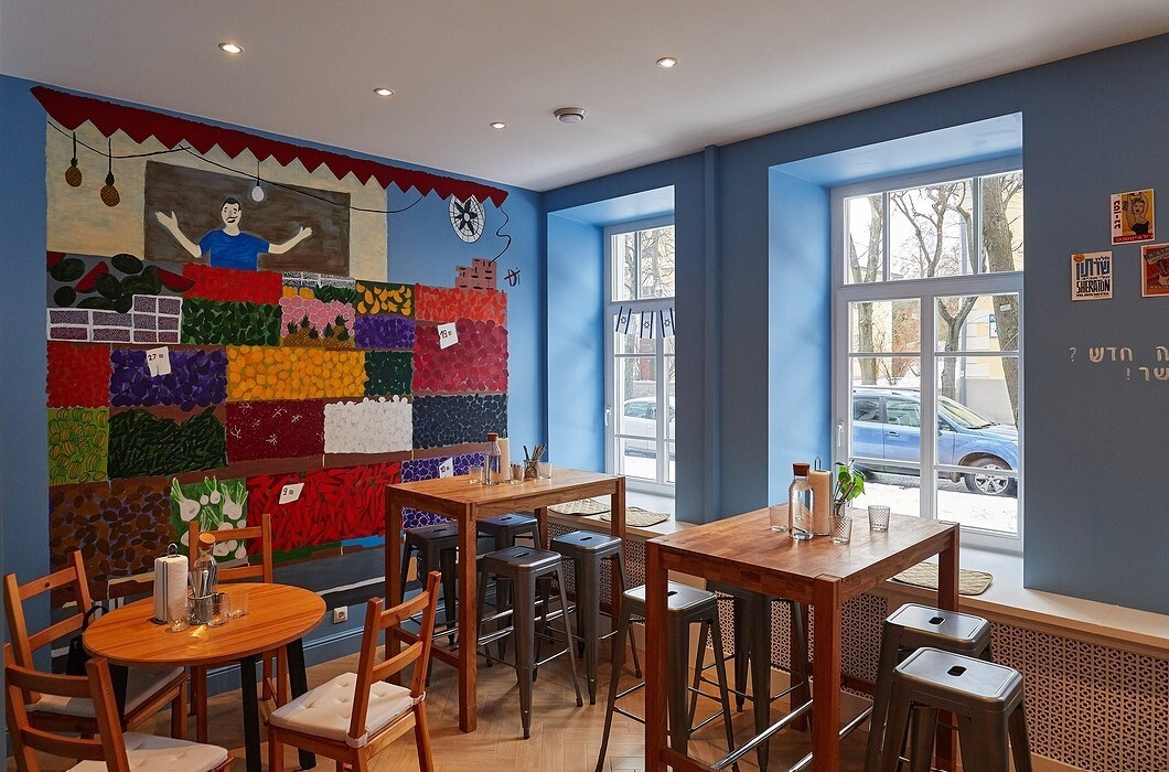 Вряд ли кто-то поспорит с нами, что здесь самая вкусная израильская кухня в Минске. Для вегетарианцев здесь есть чечевичный суп и аж пять видов хумуса: с кедровым орехом, с грибами и луком, с матбухой, с фалафелем и с печеным перцем. Можно попробовать и салат фаттуш, для которого очень сложно найти правильный рецепт гранатовой заправки. Также вегетарианцы могут попробовать салат табуле, фалафель с тхиной и питу с запеченными овощами. Фалафель здесь подают в трех вариациях: на тарелке, на лаффе и в пите. На десерт — кунжутная халва с финиками.