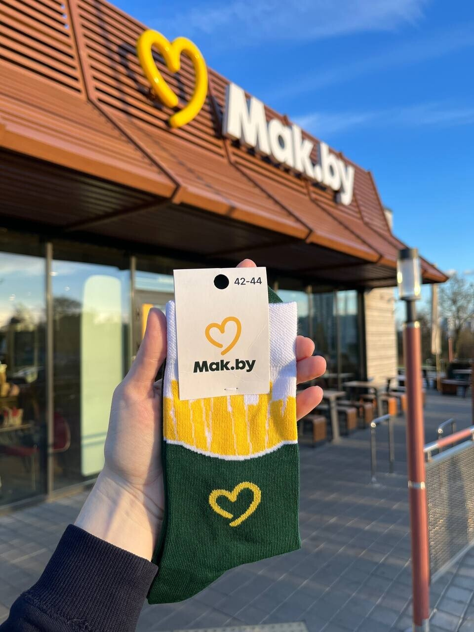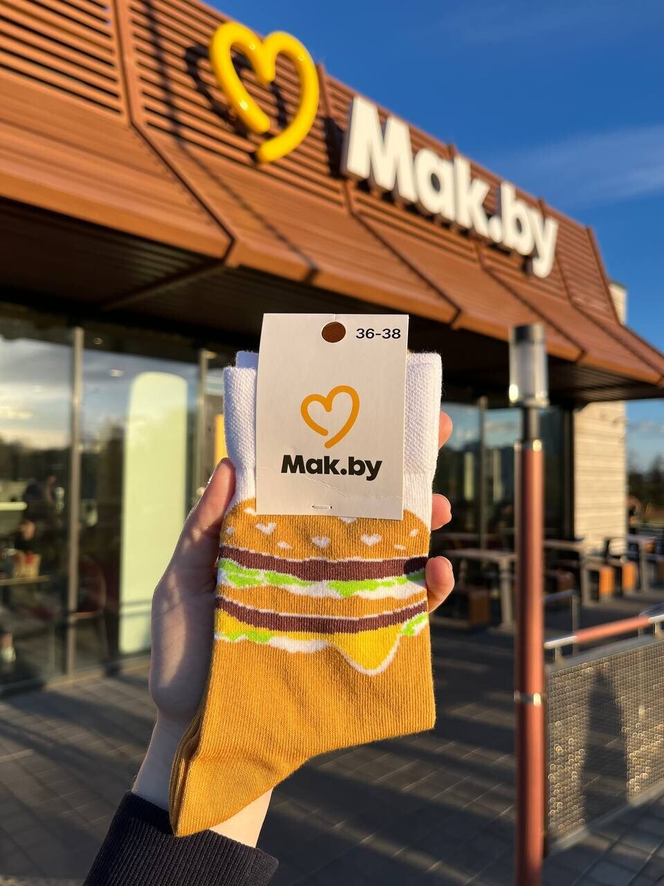Во всех ресторанах сетиMak.by гостям предлагают предложение “Комбо на стиле”. При покупке большого комбо с двойным мак бургером/ мак бургером с курицей/ двойным биг бургером, большим картофелем фри, прохладительным напитком и вишневым пирожком, вы получаете в подарок носки, сделанные на Брестском чулочном комбинате.